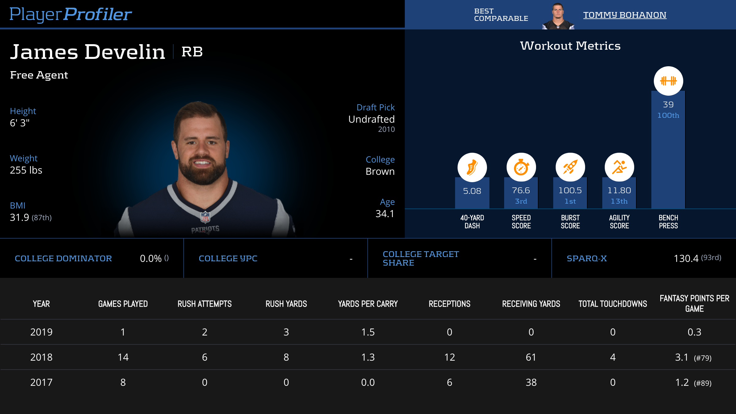 Box score statistics such as targets, yards, touchdowns, and fantasy points per target are updated the next day. Advanced stats and metrics are updated later in the week during the NFL season.