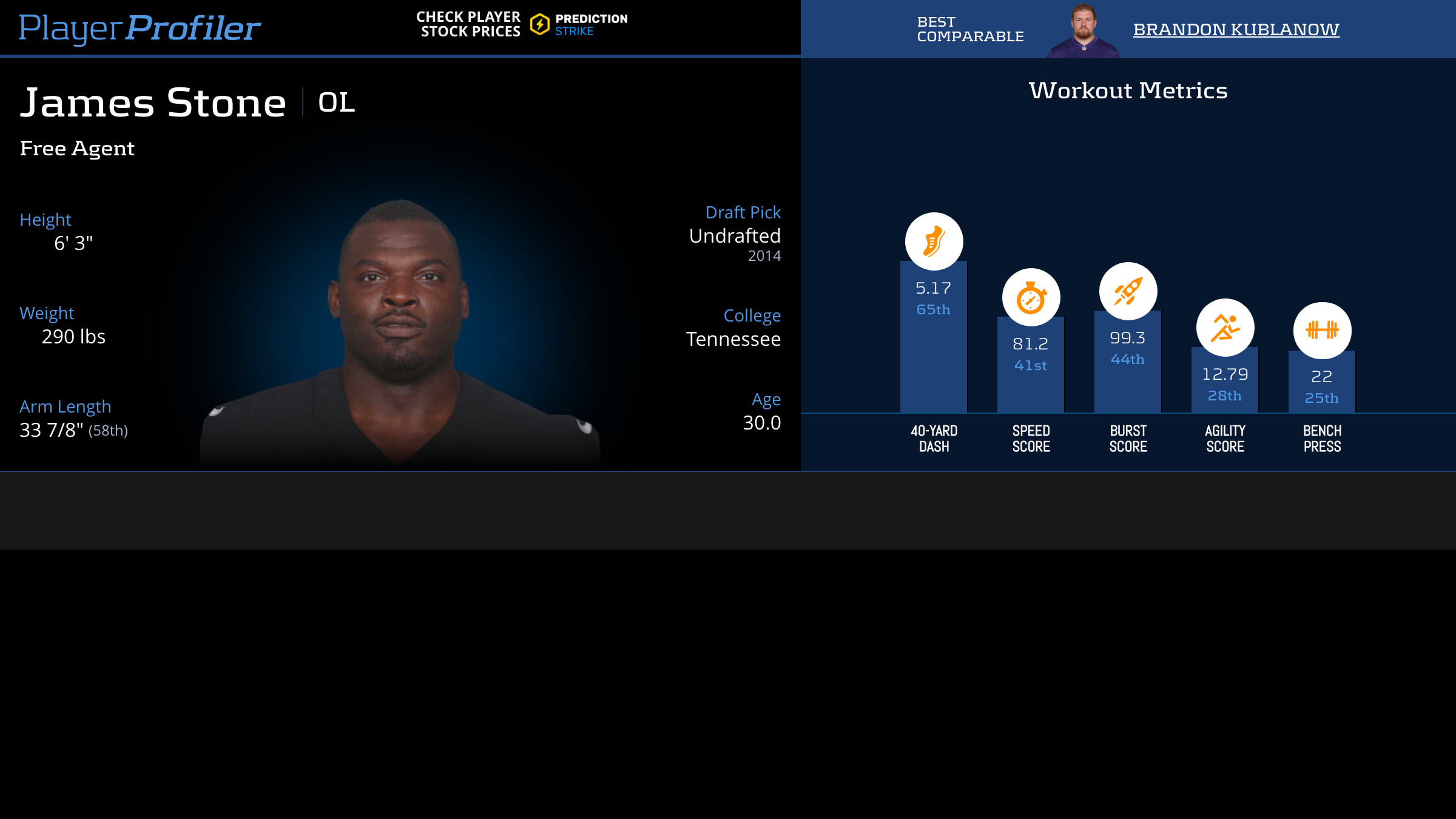 Download all James Stone advanced stats and metrics with Data Analysis.