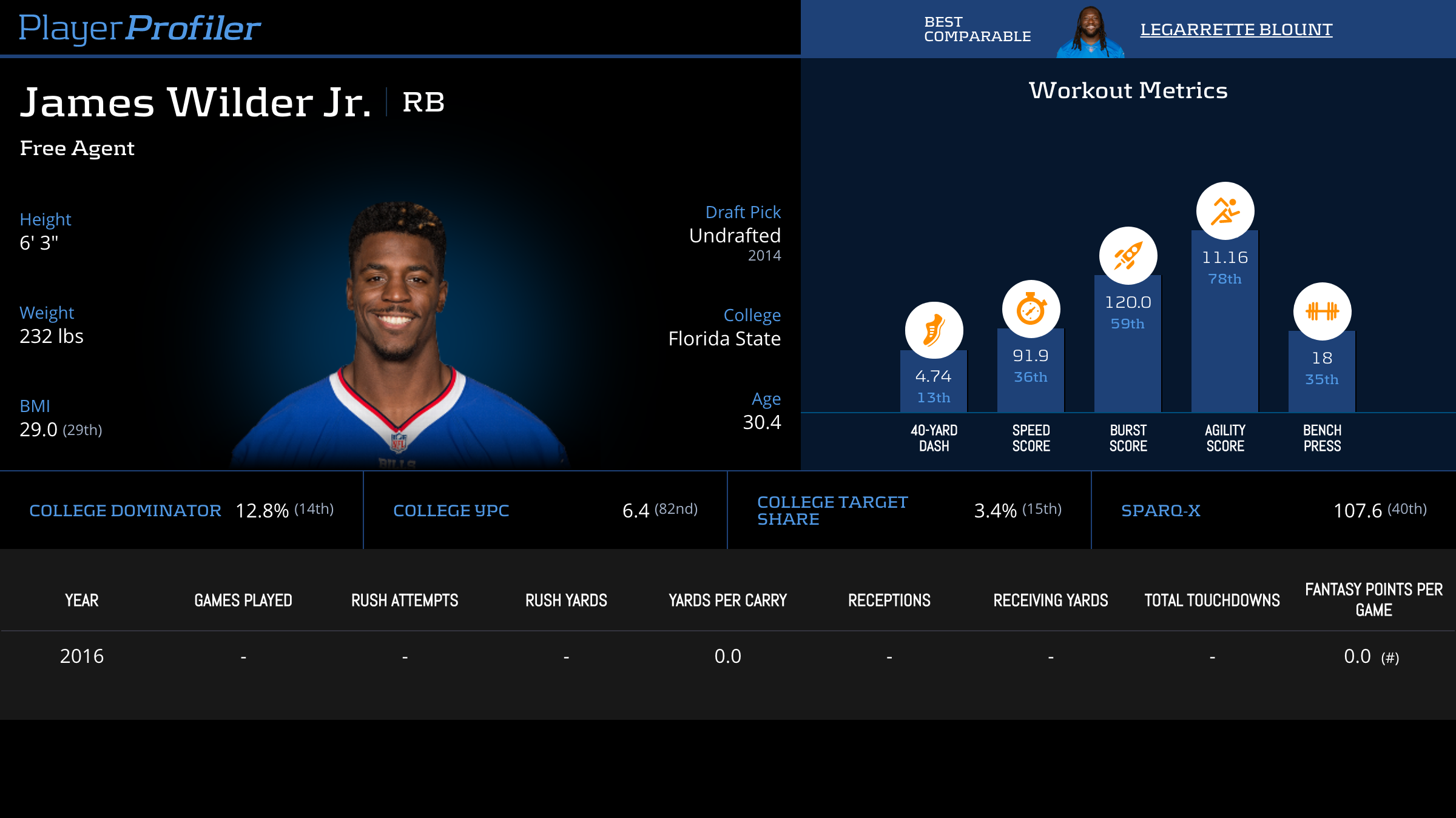 Year Games Atts Rush Yds YPC Rec Rec Yds TD Fantasy Pts/Game