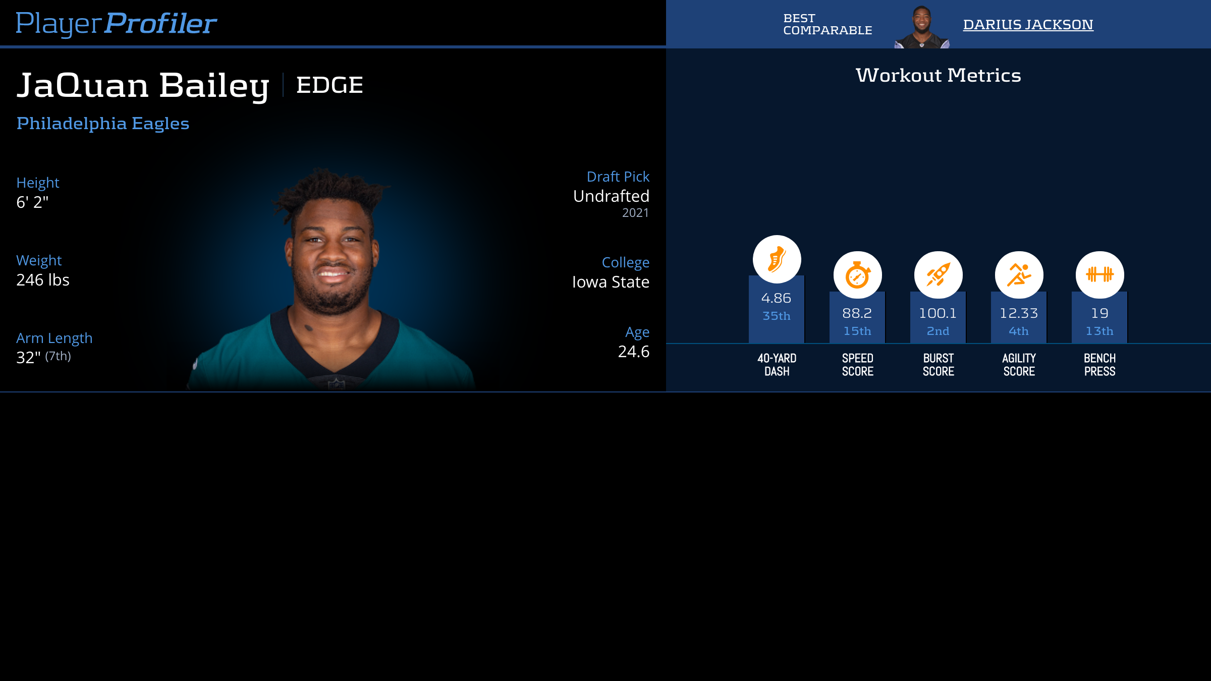 Download all JaQuan Bailey advanced stats and metrics with Data Analysis.