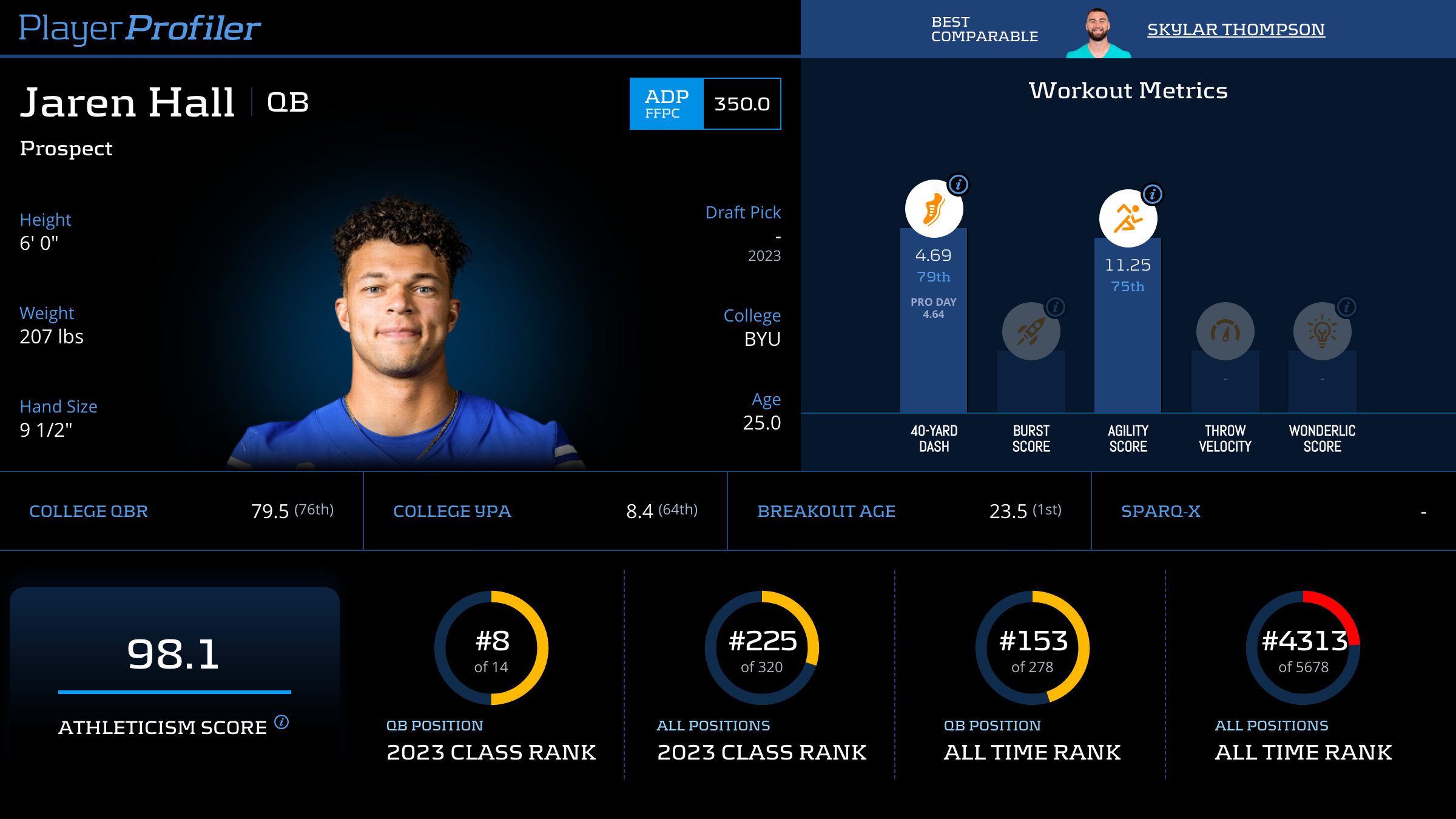 | 8 | GB | 4 | 75.0% | 23 (14 air) | 5.8 | -- | -1 | -- | -1.2 (#40) |