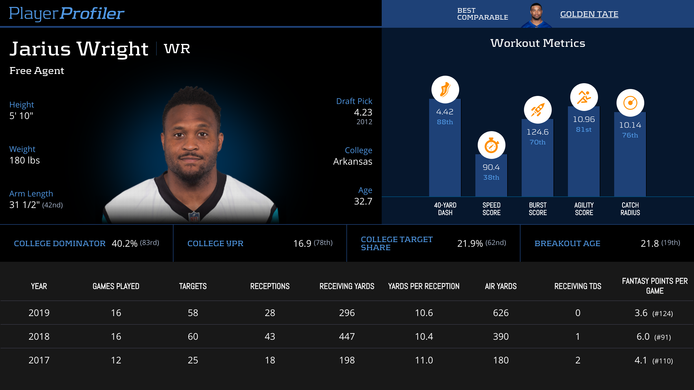 | 5 | JAC | D.J. Hayden | 79.3% | 25 | 3 (1 rz) | 1 | 6 | 1.6 (##94) |