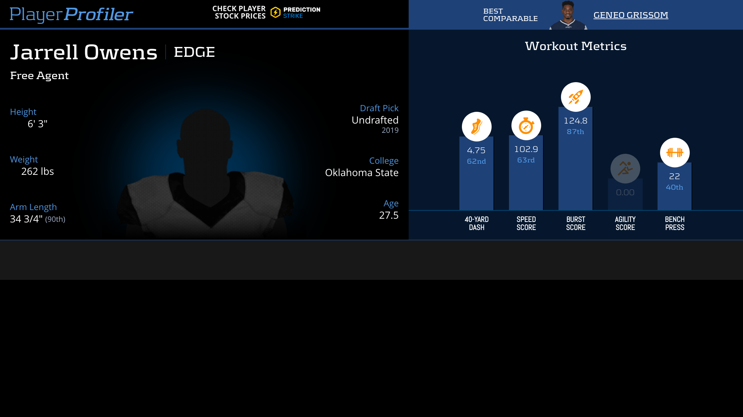 Download all Jarrell Owens advanced stats and metrics with Data Analysis.