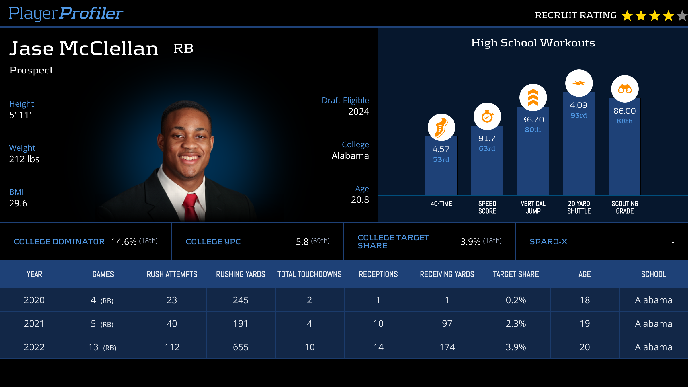 | Year Year | Games Games | Rush Attempts Rush Atts | Rushing Yards Rush Yrds | Total Touchdowns TDs | Receptions Rec | Receiving Yards Rec Yrds | Target Share Tgt Share | Age Age | School School |