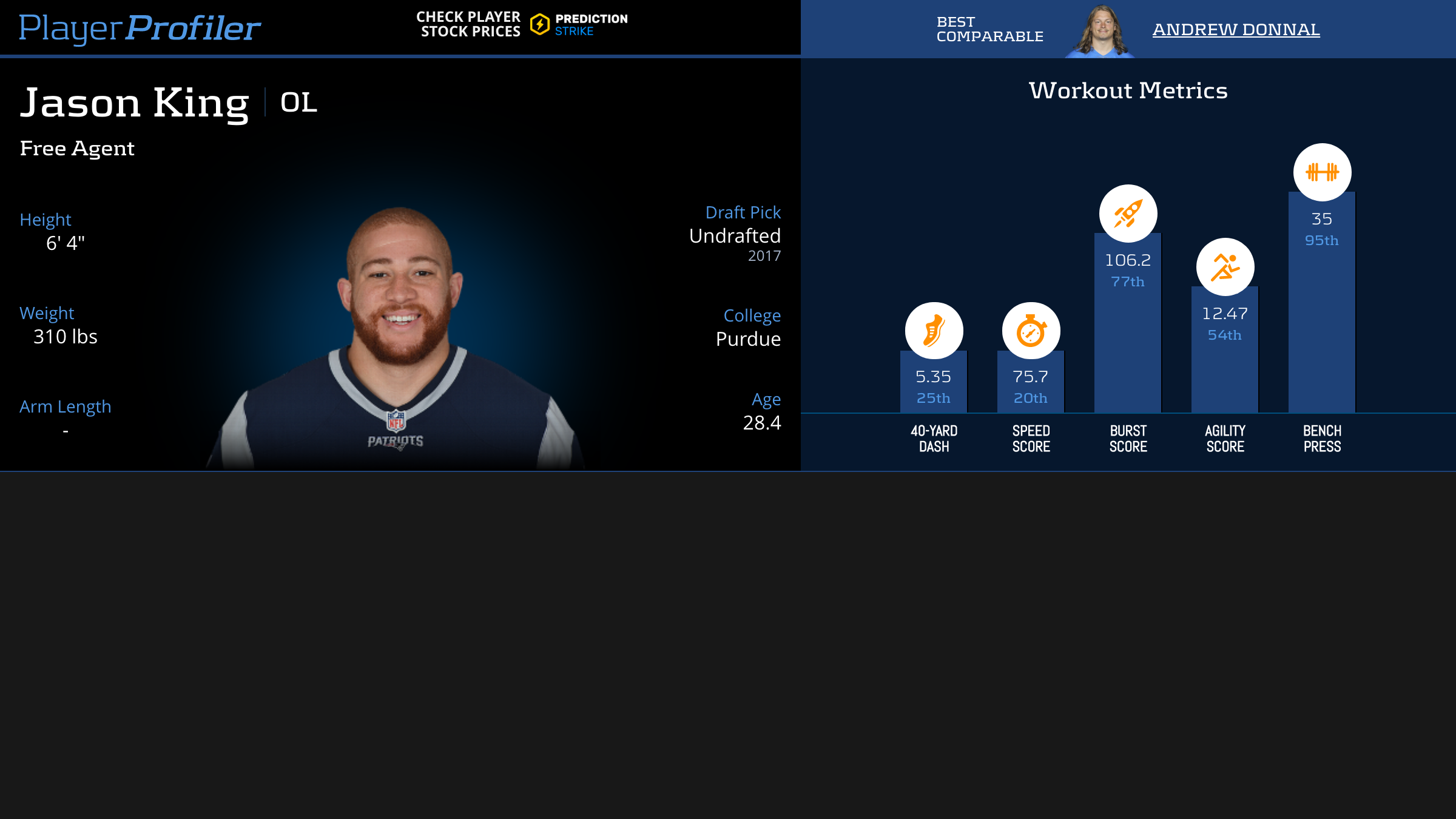 Download all Jason King advanced stats and metrics with Data Analysis.