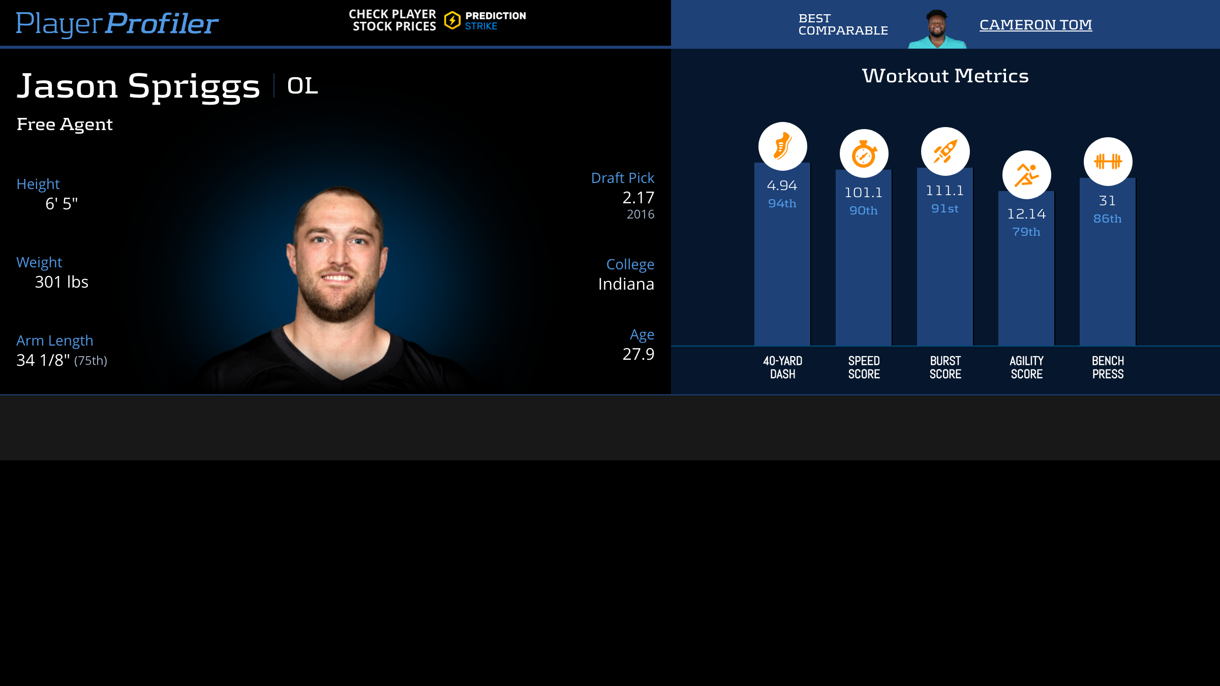 Download all Jason Spriggs advanced stats and metrics with Data Analysis.