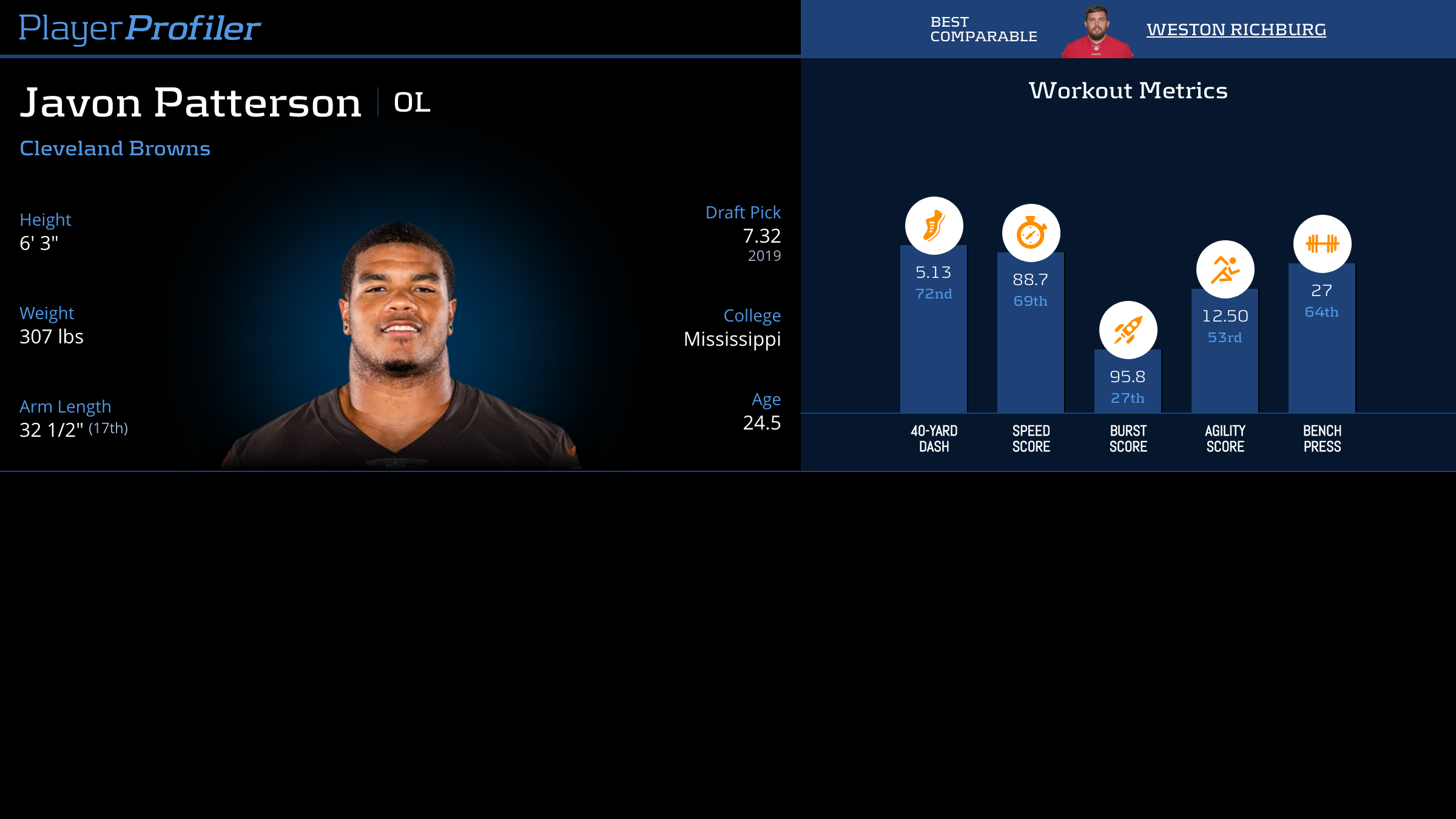 Download all Javon Patterson advanced stats and metrics with Data Analysis.