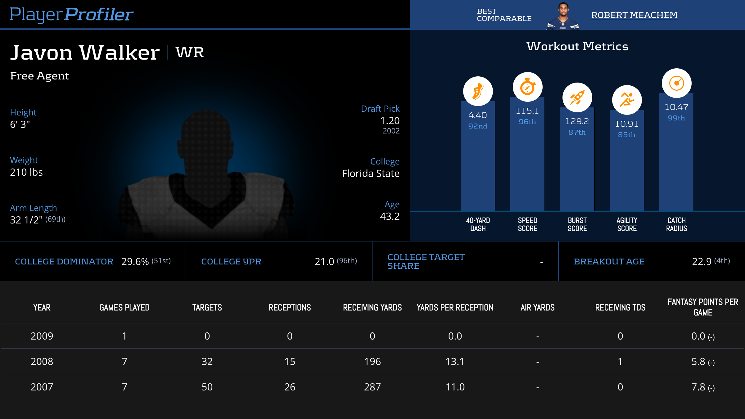 Year Games Tgts Rec Rec Yds YPR Air Yds Rec TD Fantasy Pts/Game