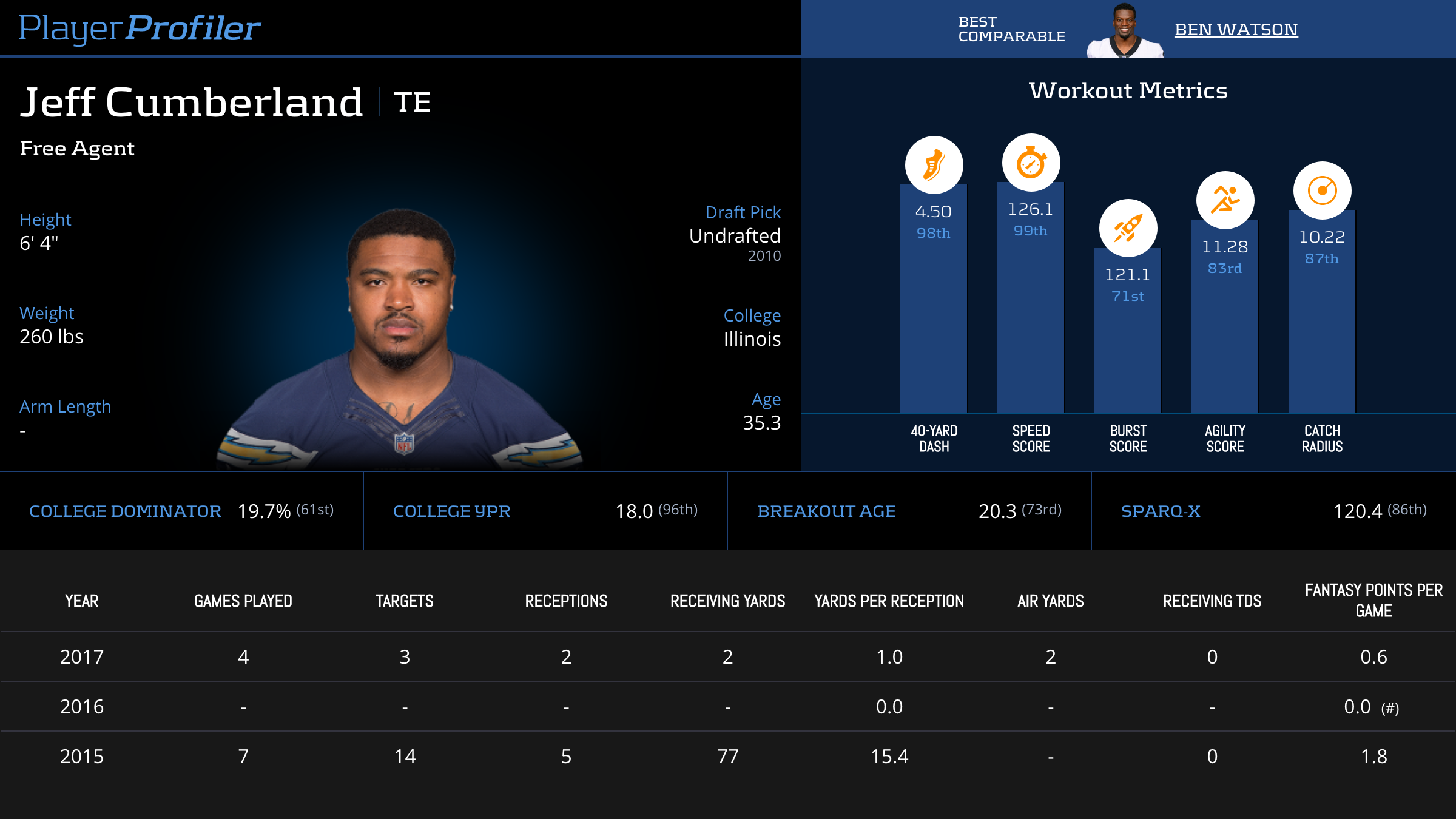 Box score statistics such as targets, yards, touchdowns, and fantasy points per target are updated the next day. Advanced stats and metrics are updated later in the week during the NFL season.