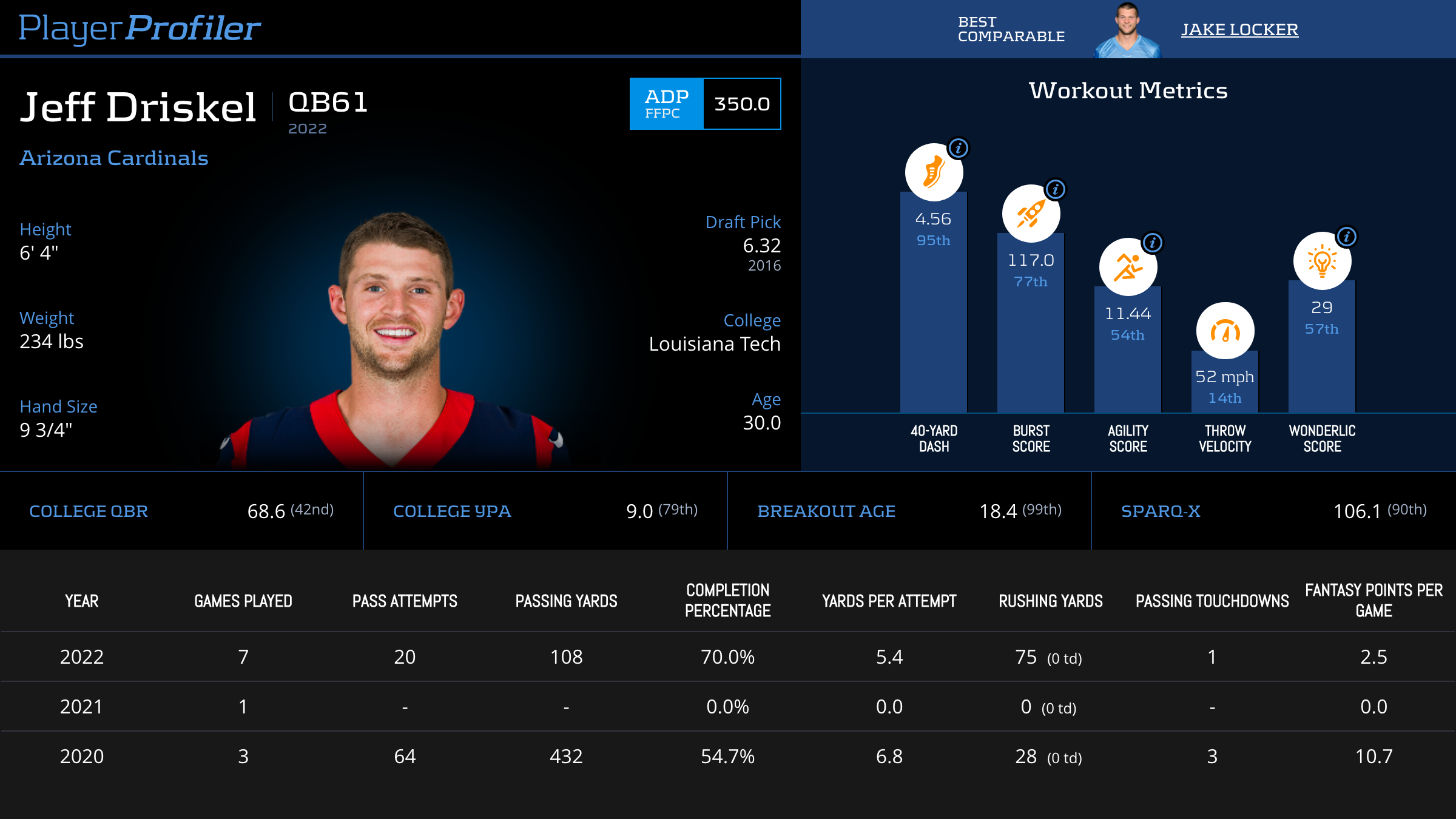 | Year Year | Games Games | Pass Attempts Pass Atts | Passing Yards Pass Yds | Yards Per Attempt YPA | Completion Percentage Comp % | Passing Touchdowns Pass TDs | Rushing Yards Rush Yds | Age Age | School School |