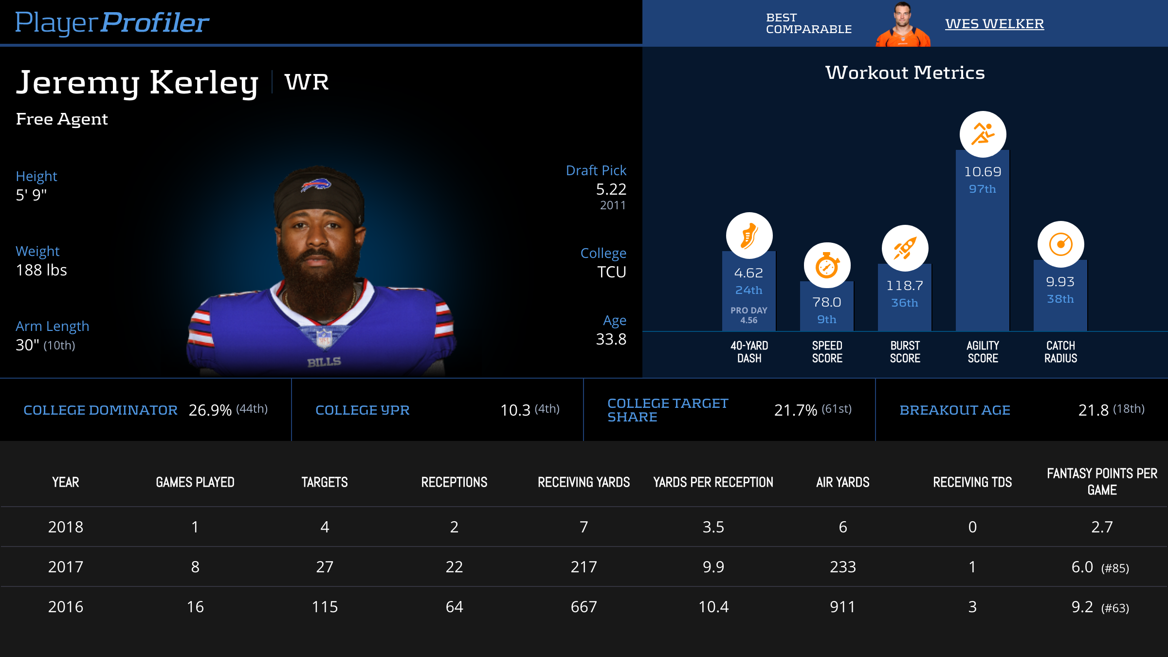 Box score statistics such as targets, yards, touchdowns, and fantasy points per target are updated the next day. Advanced stats and metrics are updated later in the week during the NFL season.