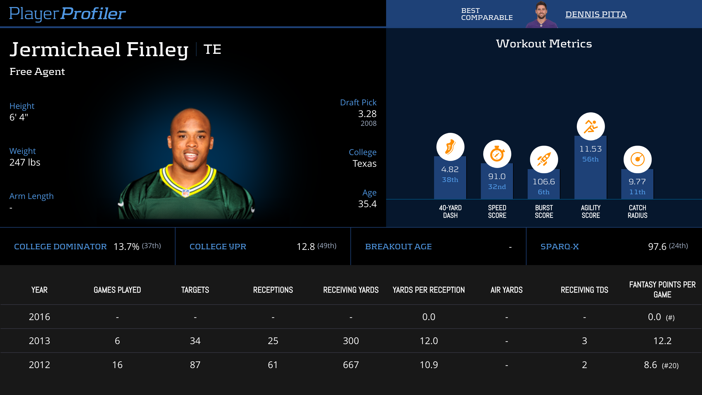 Box score statistics such as targets, yards, touchdowns, and fantasy points per target are updated the next day. Advanced stats and metrics are updated later in the week during the NFL season.