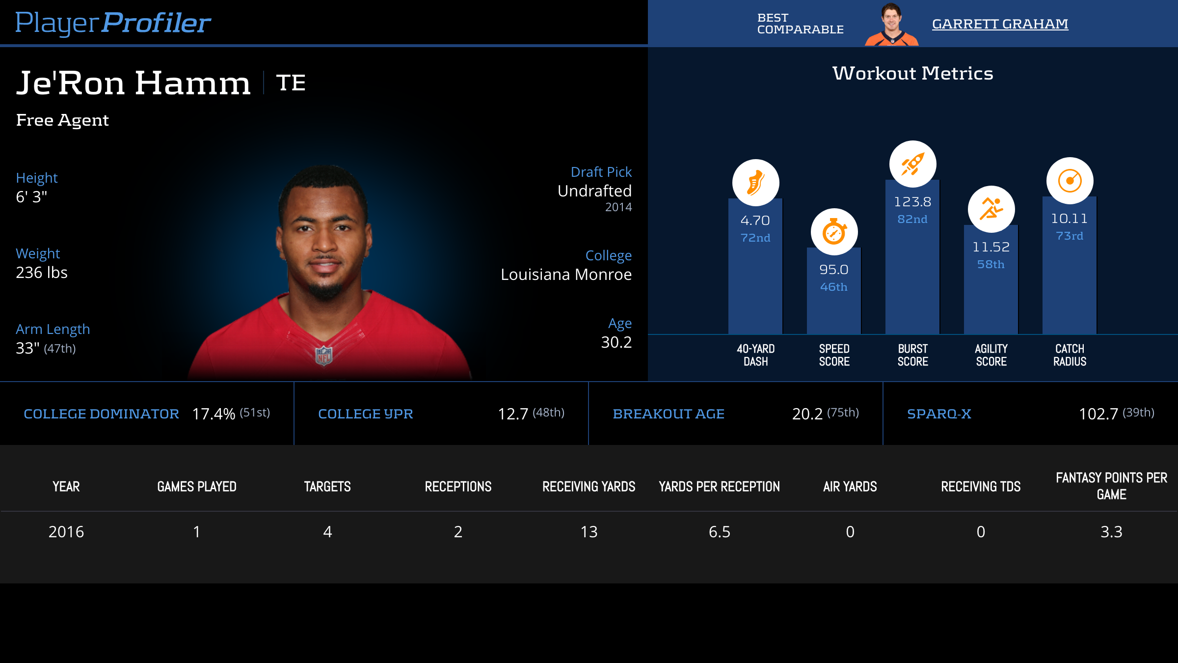 Box score statistics such as targets, yards, touchdowns, and fantasy points per target are updated the next day. Advanced stats and metrics are updated later in the week during the NFL season.