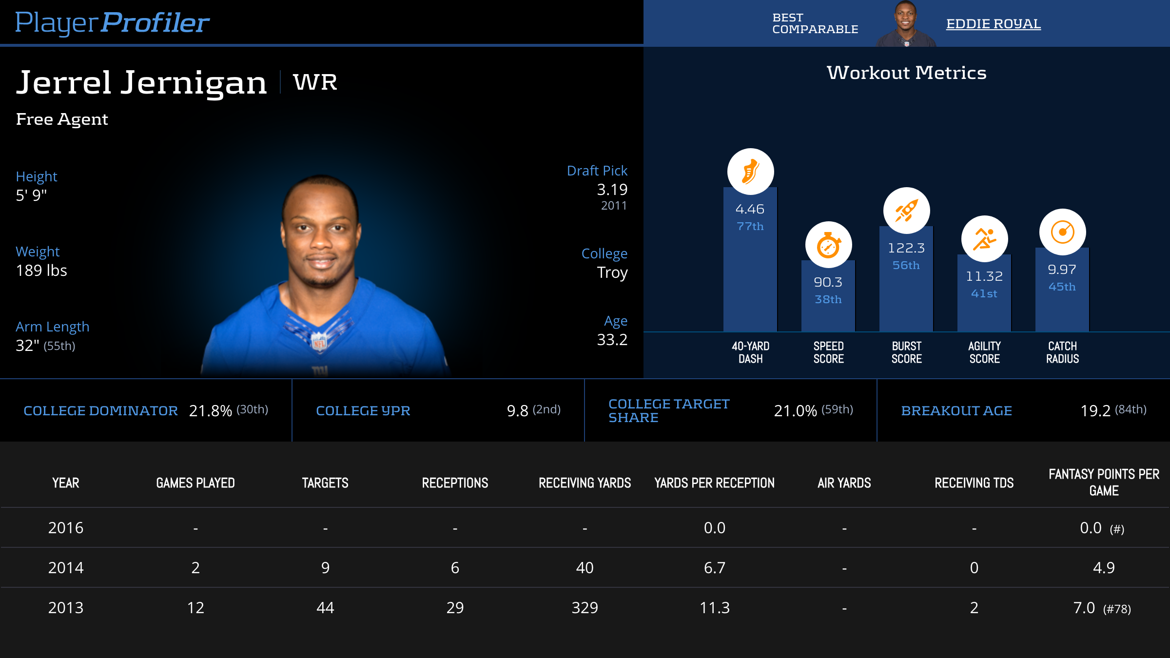Box score statistics such as targets, yards, touchdowns, and fantasy points per target are updated the next day. Advanced stats and metrics are updated later in the week during the NFL season.
