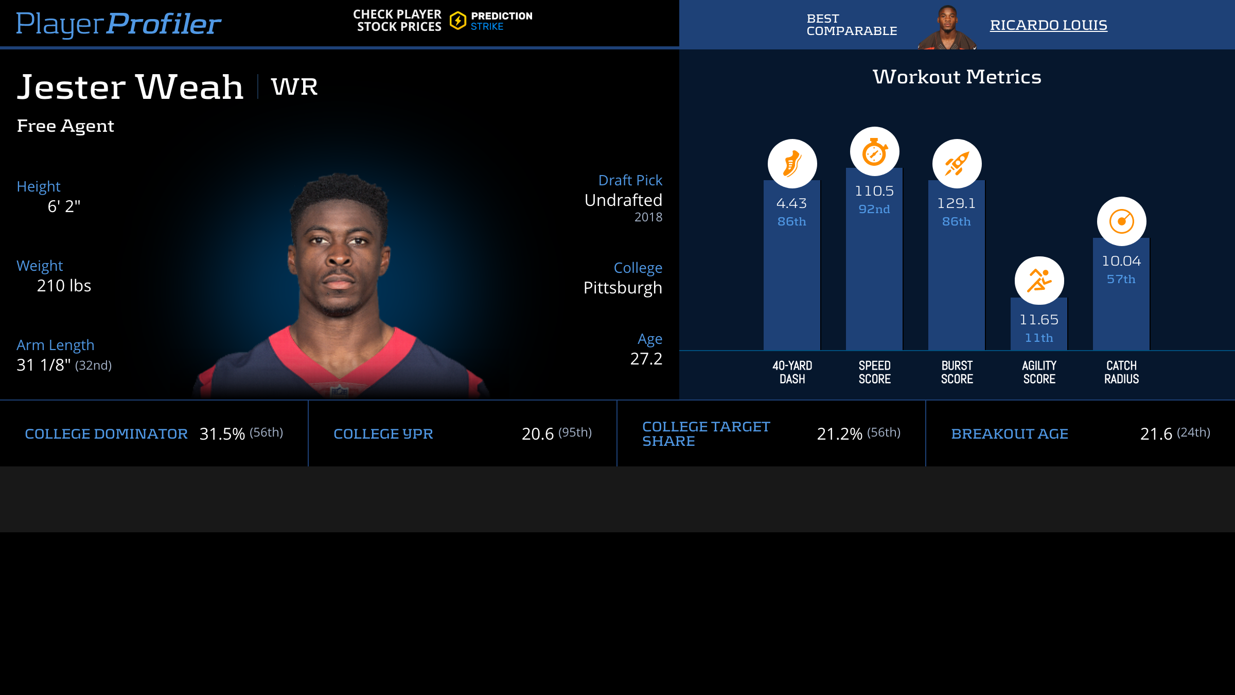 Player Popularity Index (PPI) ranks PlayerProfiler page views over the last 30 days. For example, the No. 1 PPI player page is the most frequently visited page in recent weeks.