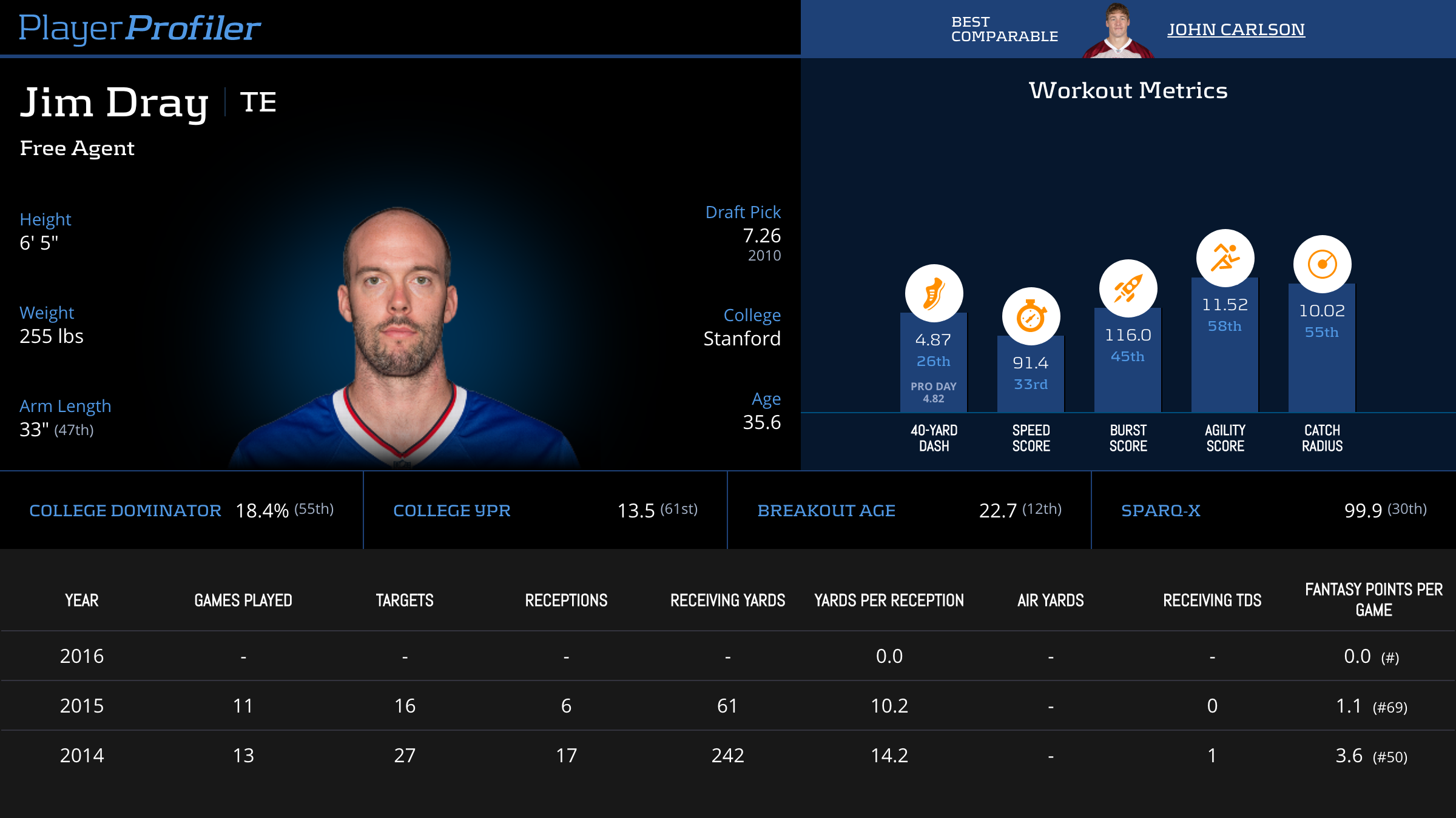 Box score statistics such as targets, yards, touchdowns, and fantasy points per target are updated the next day. Advanced stats and metrics are updated later in the week during the NFL season.