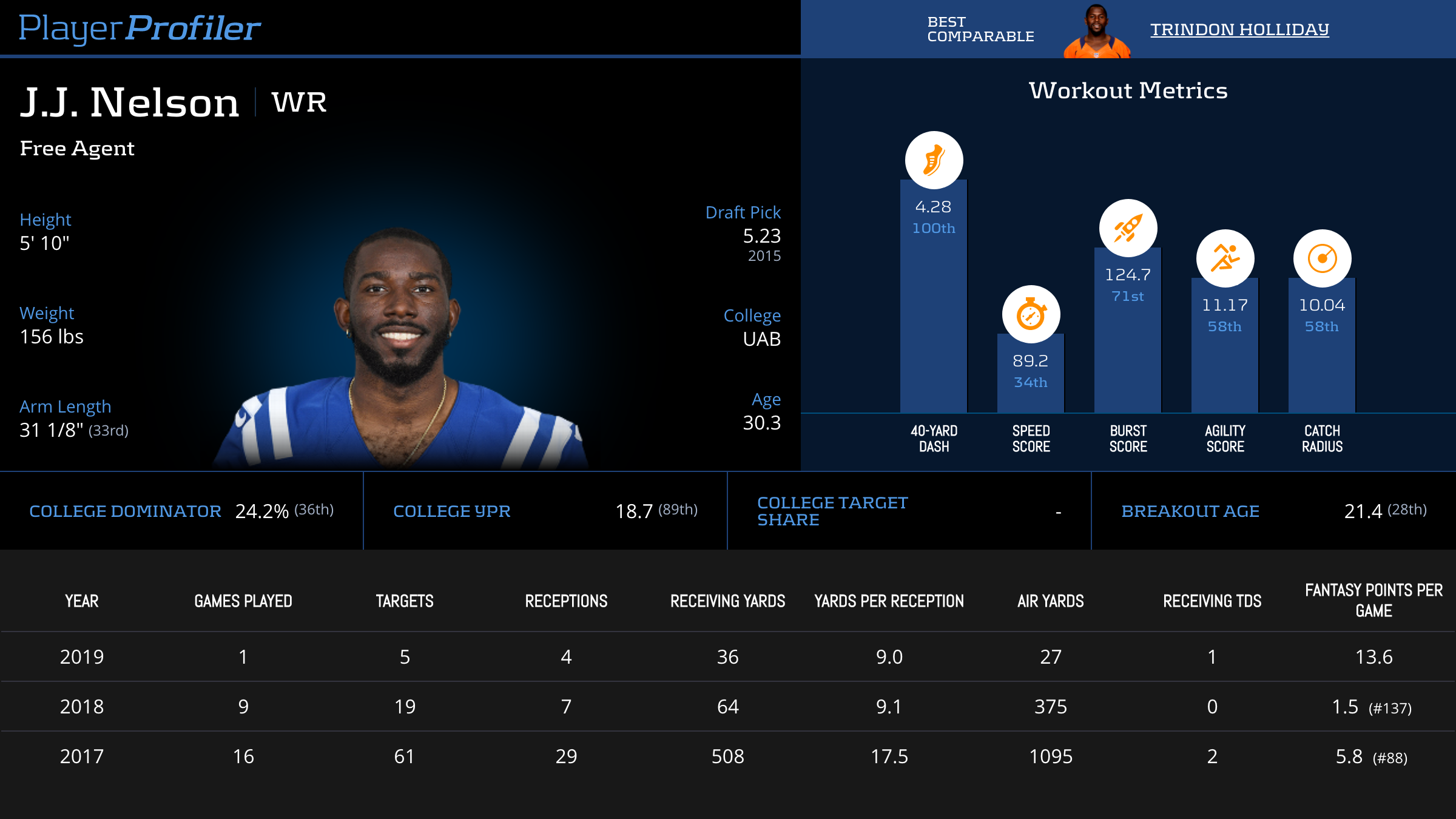 Box score statistics such as targets, yards, touchdowns, and fantasy points per target are updated the next day. Advanced stats and metrics are updated later in the week during the NFL season.