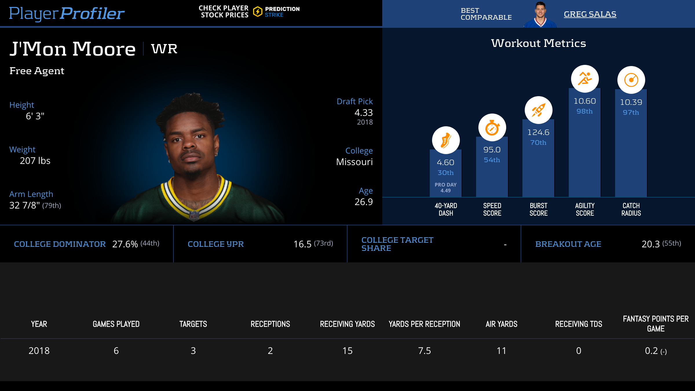 Box score statistics such as targets, yards, touchdowns, and fantasy points per target are updated the next day. Advanced stats and metrics are updated later in the week during the NFL season.