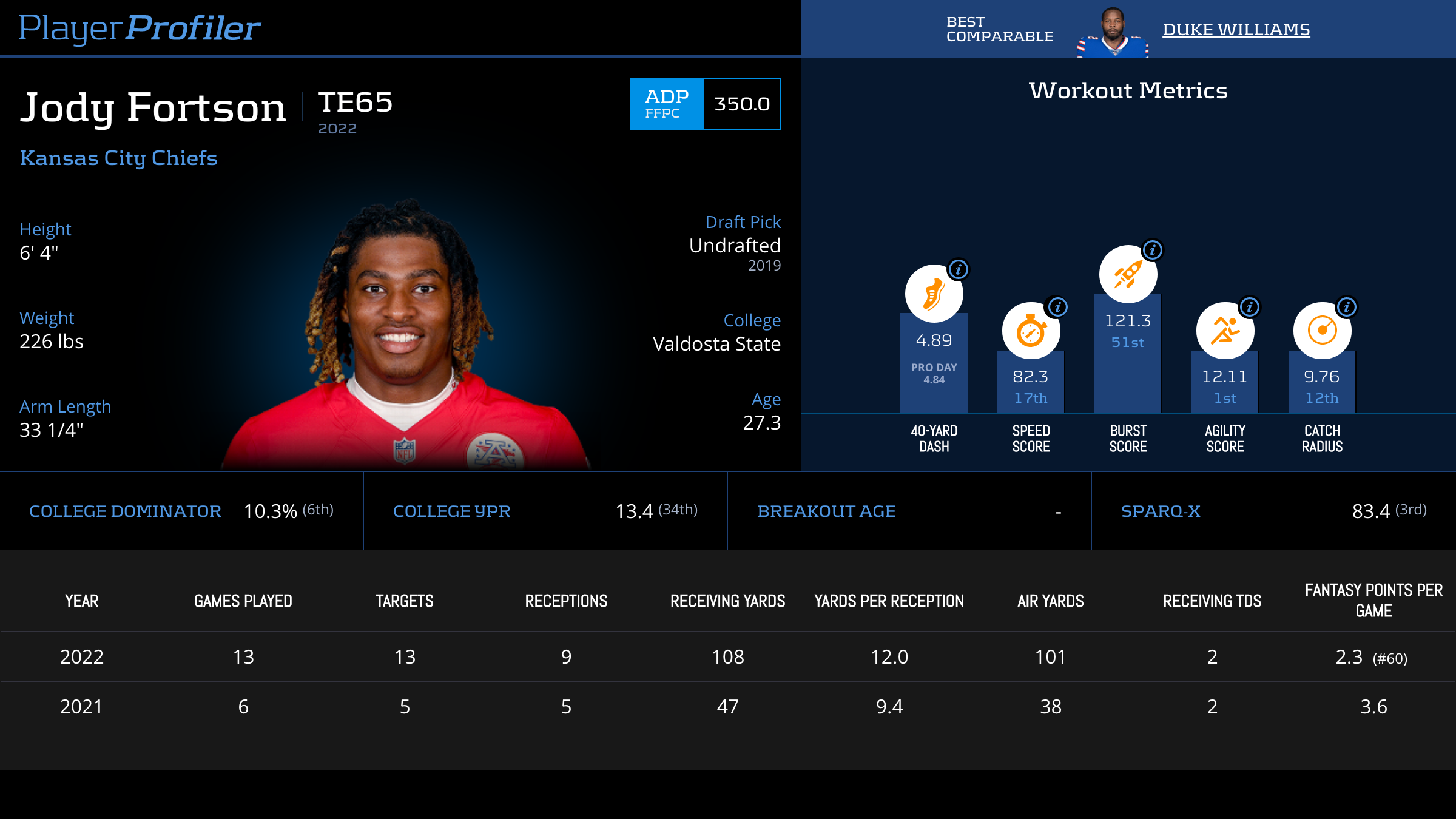 | Year Year | Games Games | Receptions Recs | Receiving Yards Rec Yds | Target Share Tgt Share | Catch Rate Catch Rate | Receiving Touchdowns Rec TDs | Special Teams Yards Special Teams | Age Age | School School |