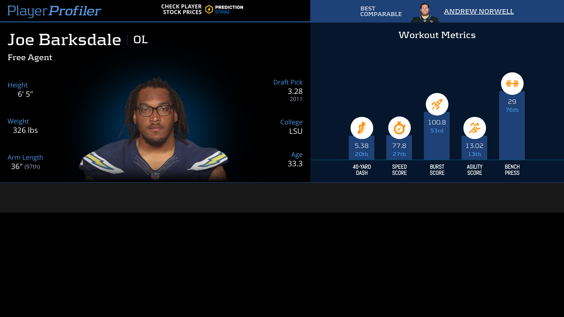 Download all Joe Barksdale advanced stats and metrics with Data Analysis.