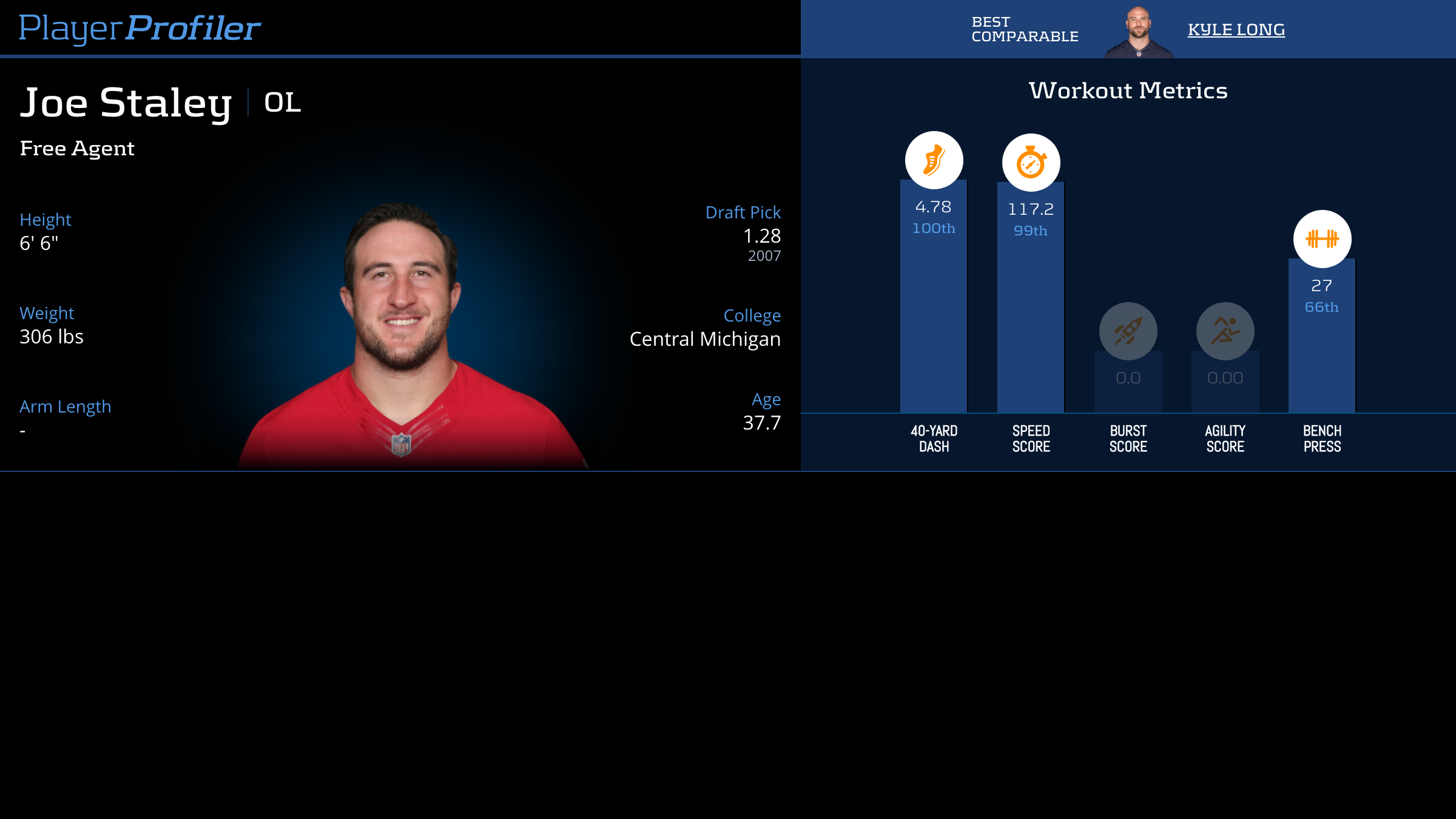 Download all Joe Staley advanced stats and metrics with Data Analysis.
