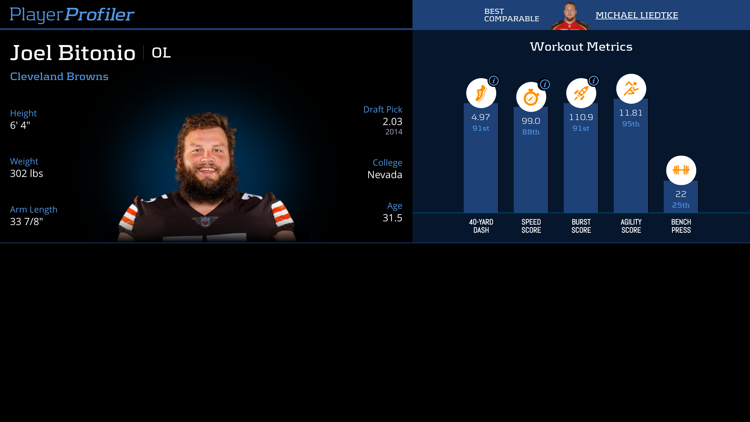 Download all Joel Bitonio advanced stats and metrics with Data Analysis.