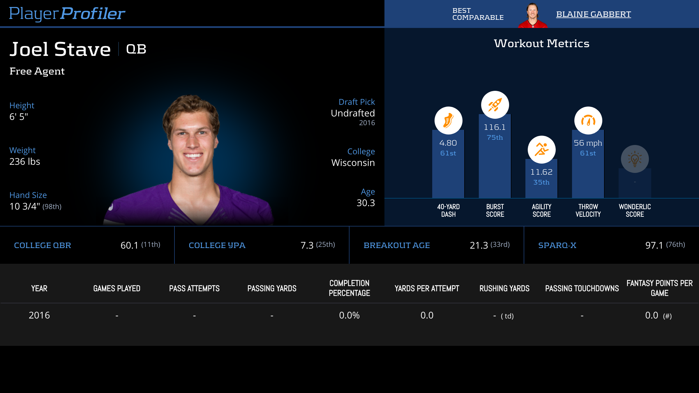 | Year Year | Games Games | Pass Attempts Pass Atts | Passing Yards Pass Yds | Yards Per Attempt YPA | Completion Percentage Comp % | Passing Touchdowns Pass TDs | Rushing Yards Rush Yds | Age Age | School School |