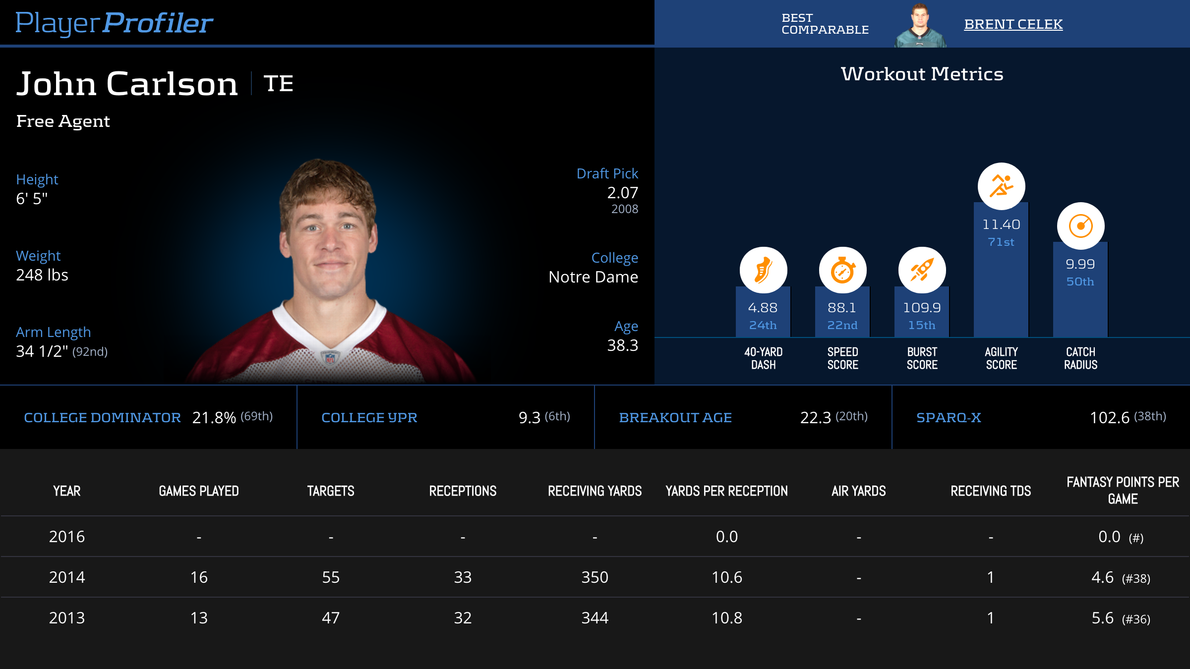 | Year Year | Games Games | Receptions Recs | Receiving Yards Rec Yds | Target Share Tgt Share | Catch Rate Catch Rate | Receiving Touchdowns Rec TDs | Special Teams Yards Special Teams | Age Age | School School |