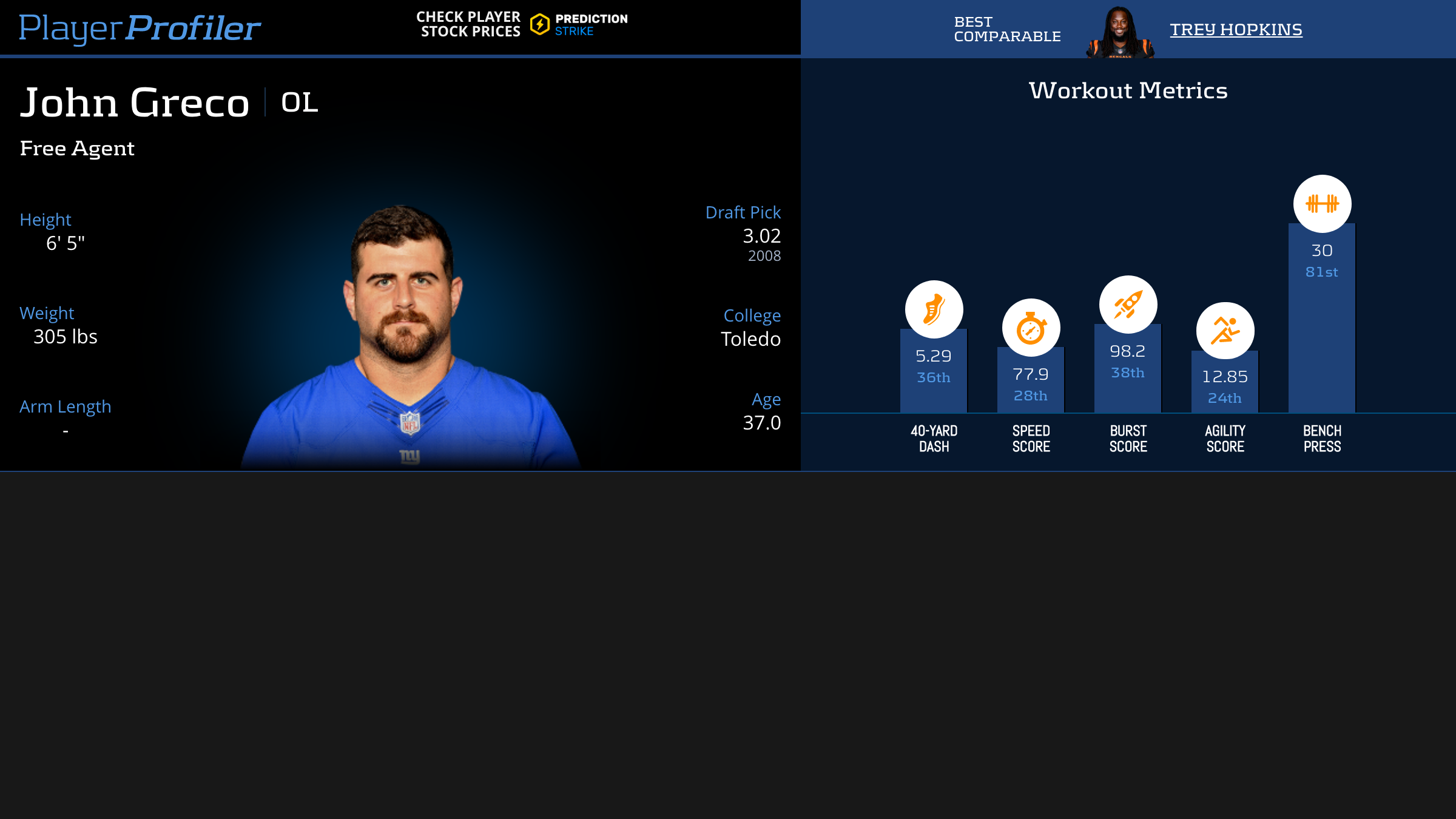 Download all John Greco advanced stats and metrics with Data Analysis.