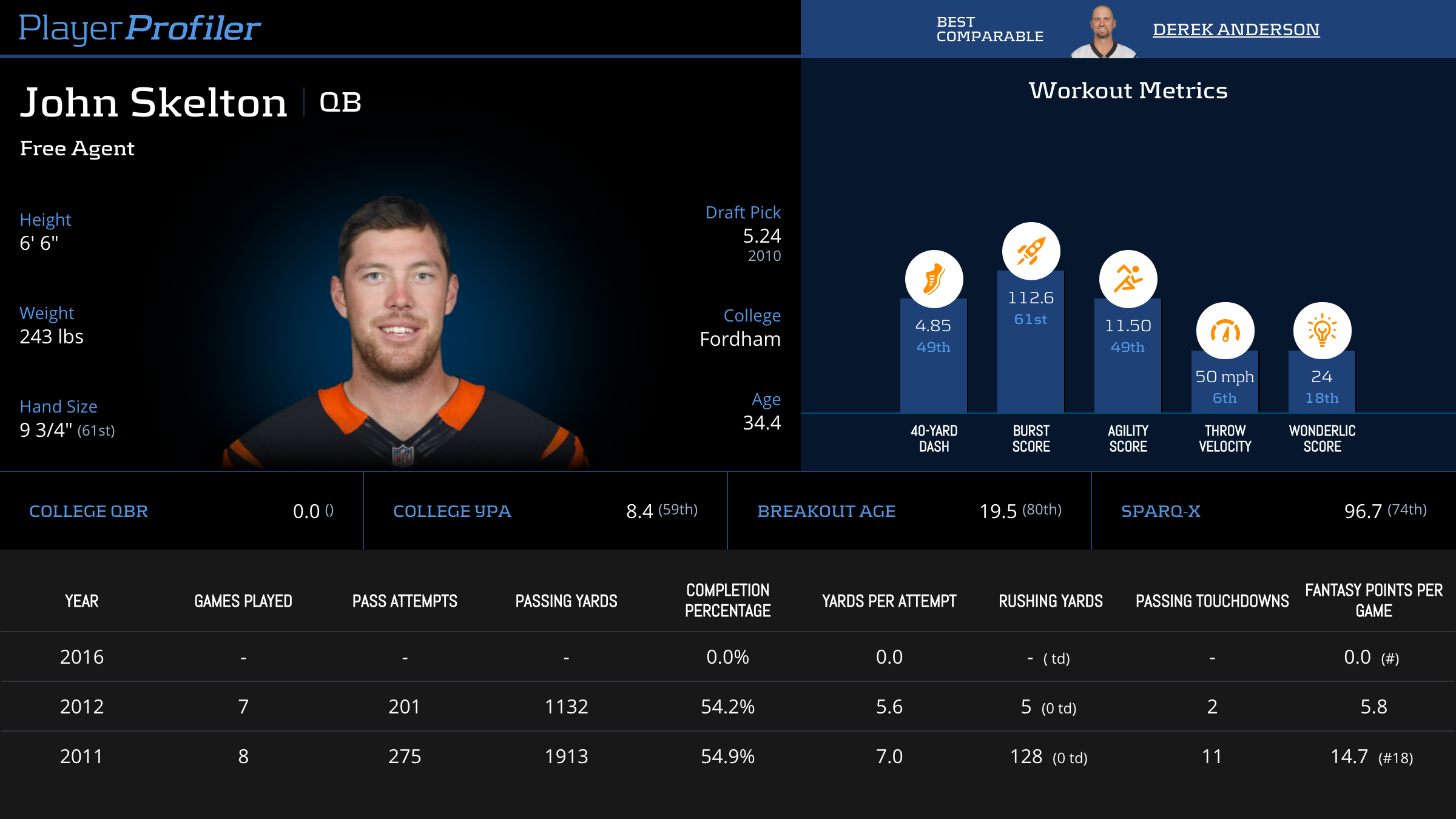| 8 | SF | 52 | 61.5% | 290 | 5.6 | 0 (1 int) | 1 | -- | 10.7 (#23) |