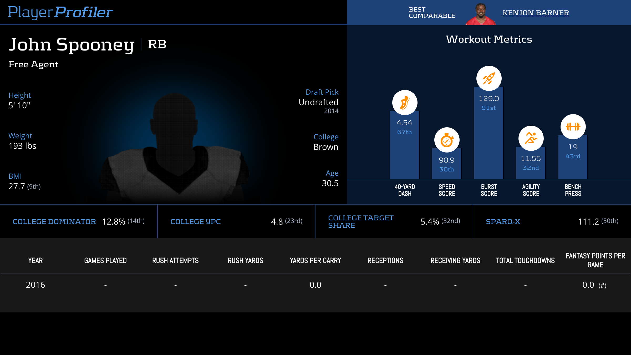 Year Games Atts Rush Yds YPC Rec Rec Yds TD Fantasy Pts/Game