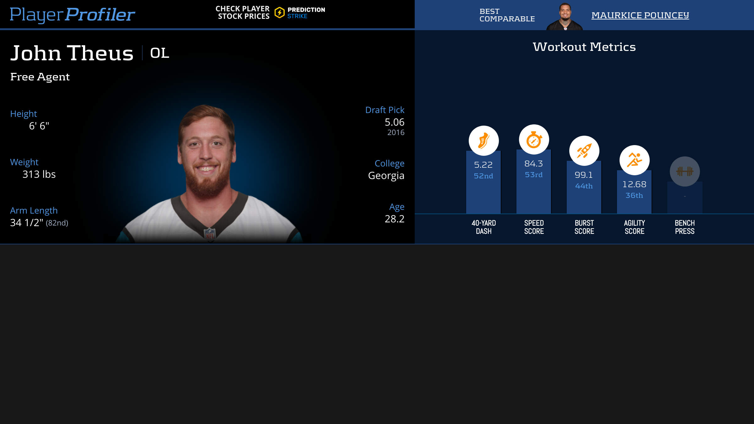 Download all John Theus advanced stats and metrics with Data Analysis.