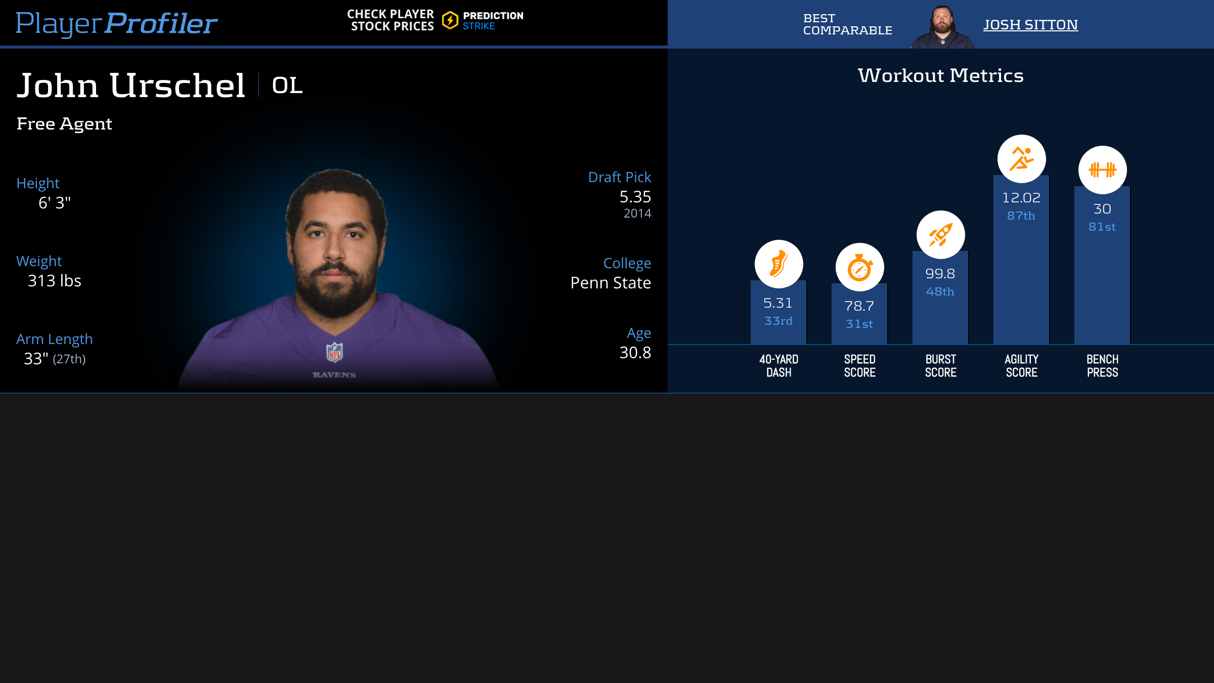 Download all John Urschel advanced stats and metrics with Data Analysis.