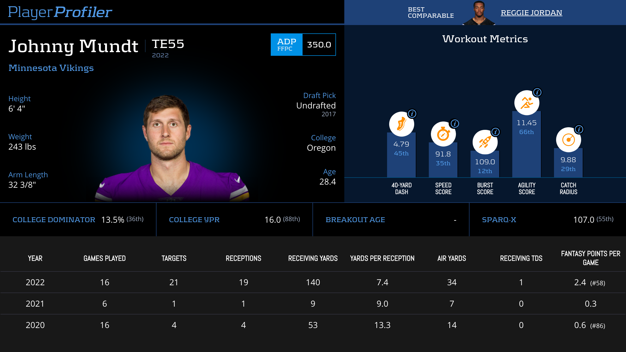 | Year Year | Games Games | Receptions Recs | Receiving Yards Rec Yds | Target Share Tgt Share | Catch Rate Catch Rate | Receiving Touchdowns Rec TDs | Special Teams Yards Special Teams | Age Age | School School |