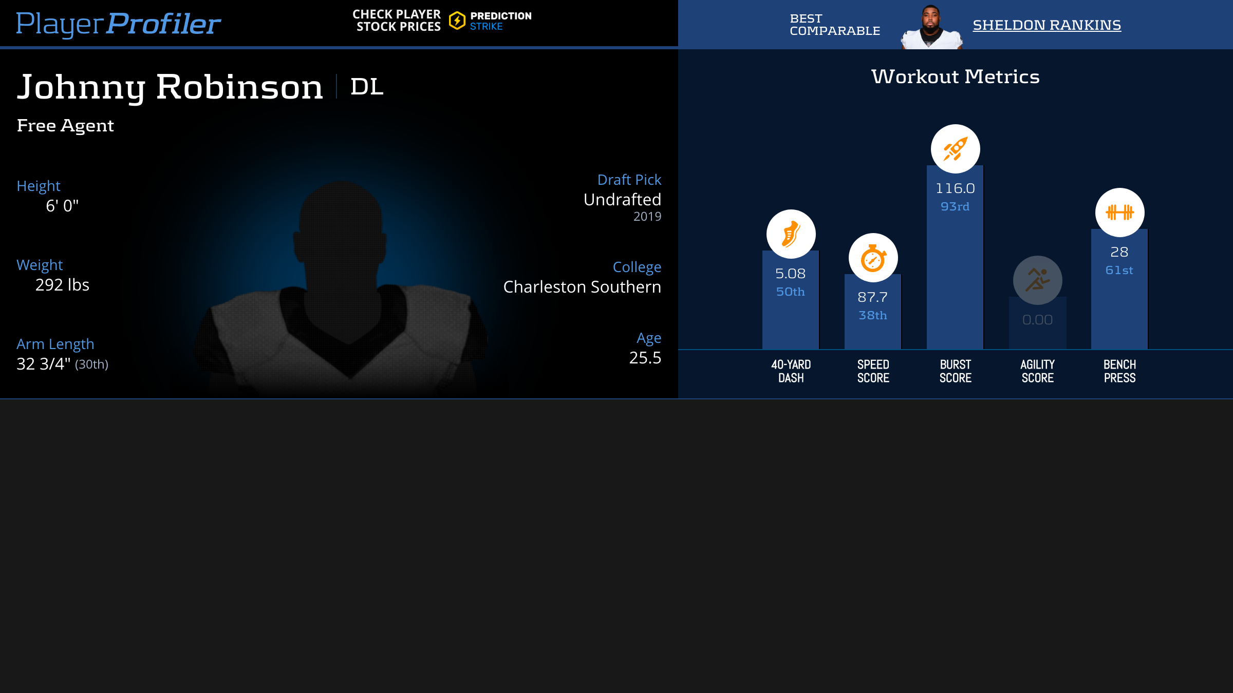 Download all Johnny Robinson advanced stats and metrics with Data Analysis.