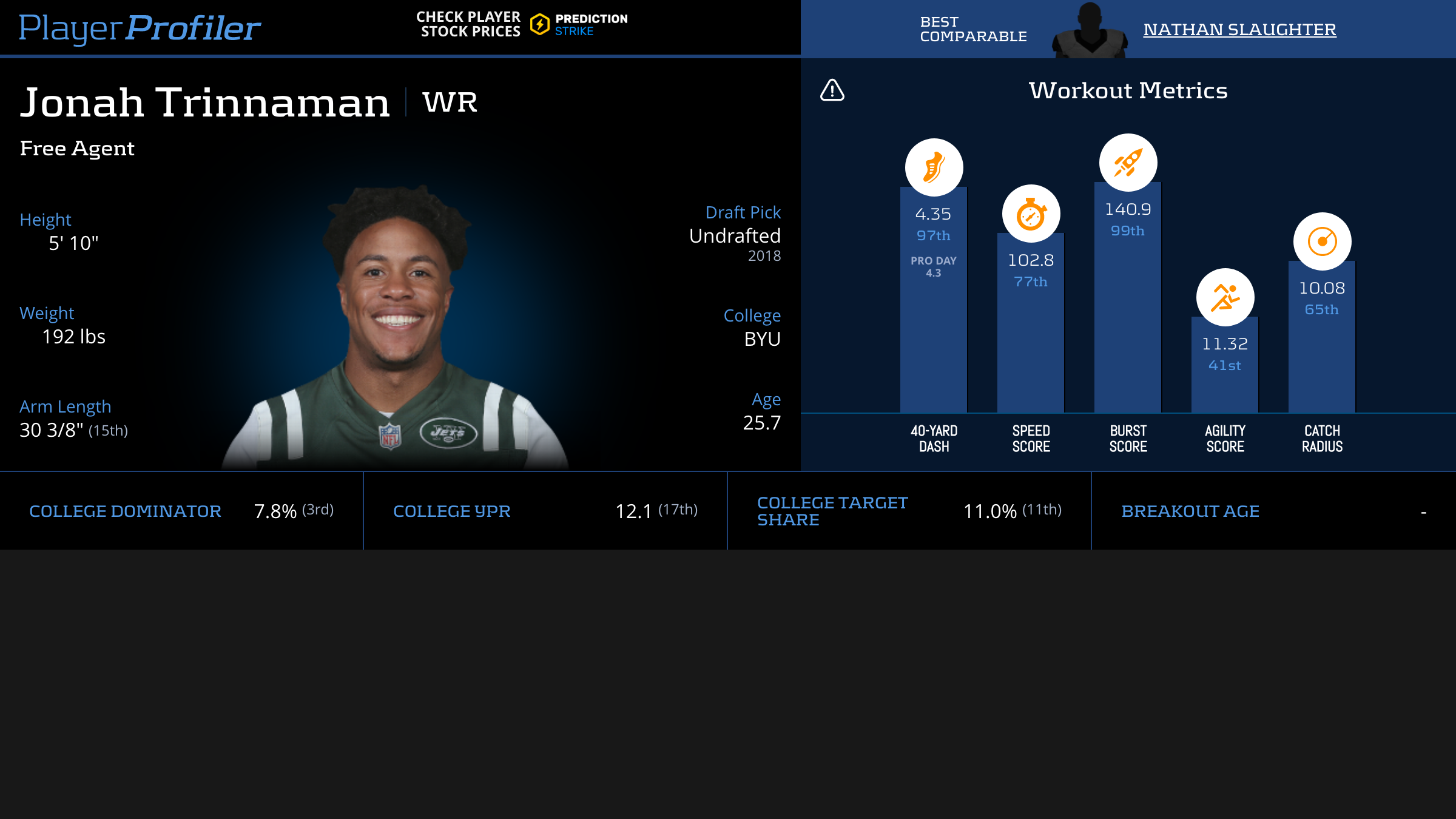 | Year Year | Games Games | Receptions Recs | Receiving Yards Rec Yds | Target Share Tgt Share | Catch Rate Catch Rate | Receiving Touchdowns Rec TDs | Special Teams Yards Special Teams | Age Age | School School |