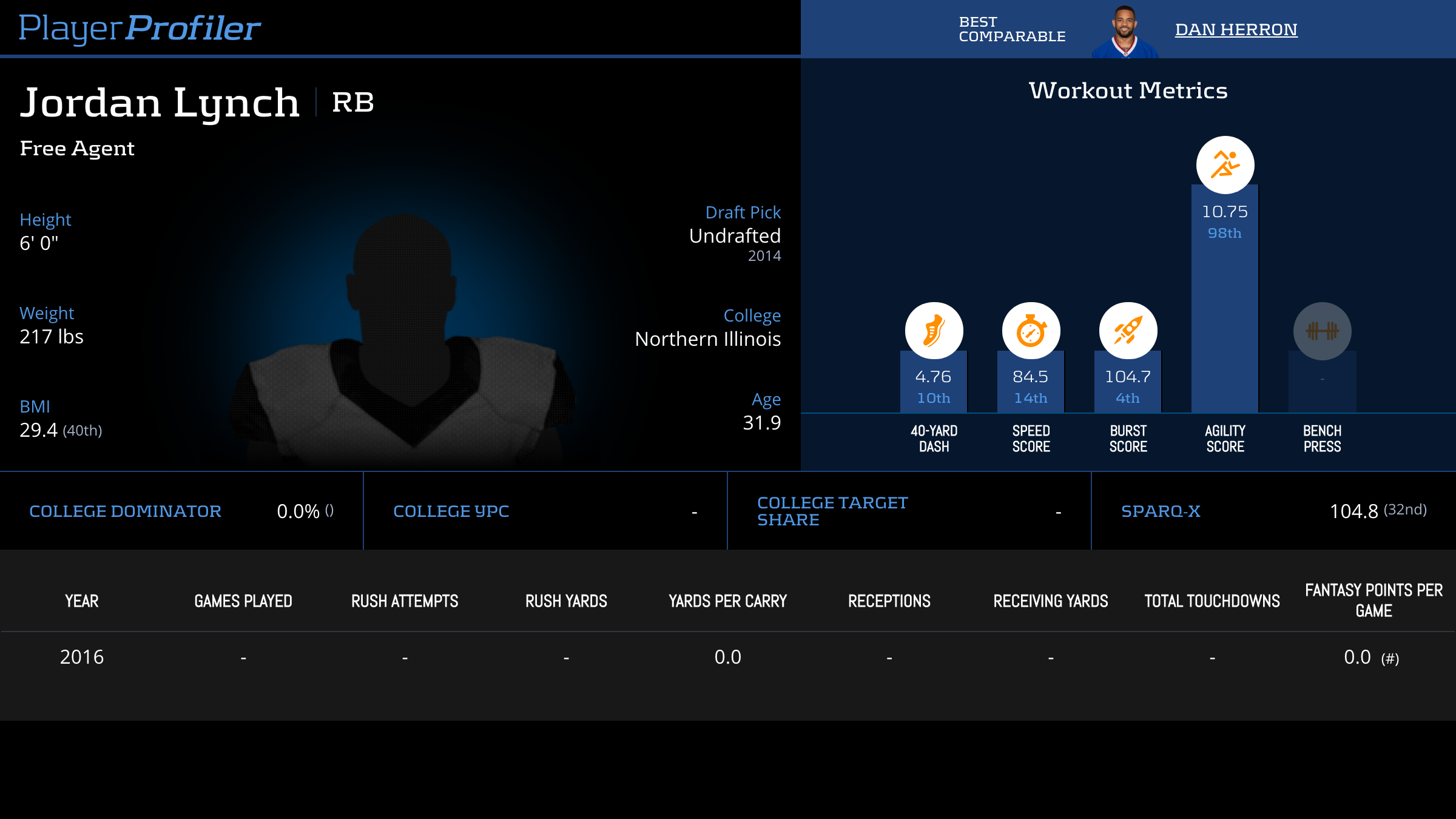 Year Games Atts Rush Yds YPC Rec Rec Yds TD Fantasy Pts/Game