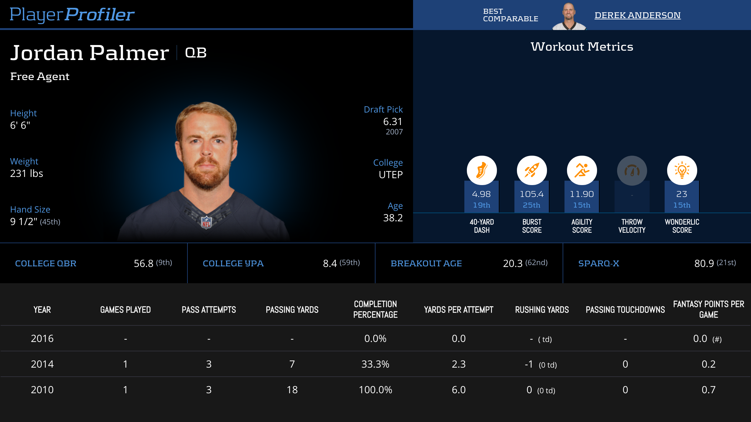 | Year Year | Games Games | Pass Attempts Pass Atts | Passing Yards Pass Yds | Yards Per Attempt YPA | Completion Percentage Comp % | Passing Touchdowns Pass TDs | Rushing Yards Rush Yds | Age Age | School School |