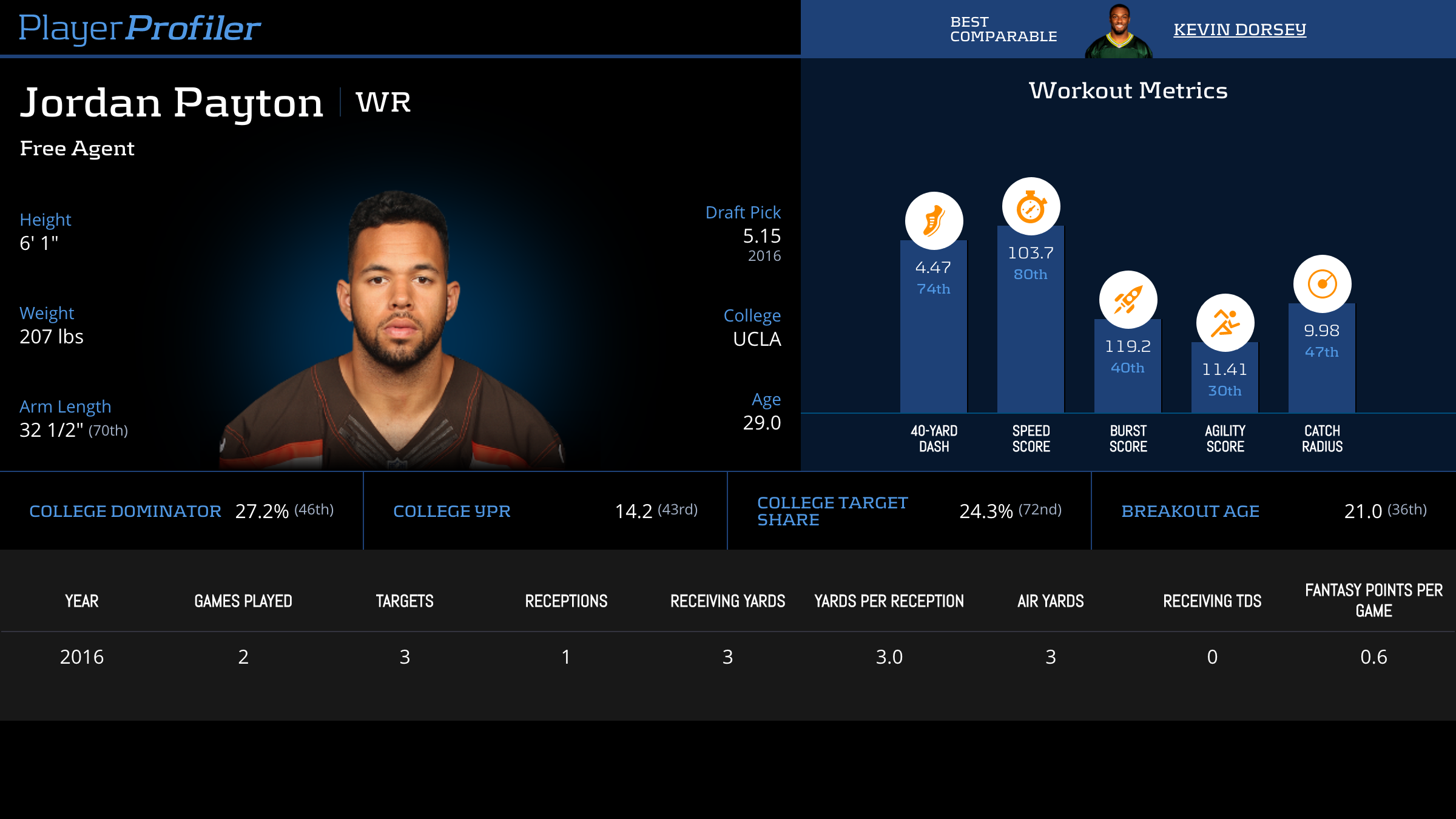 | Year Year | Games Games | Receptions Recs | Receiving Yards Rec Yds | Target Share Tgt Share | Catch Rate Catch Rate | Receiving Touchdowns Rec TDs | Special Teams Yards Special Teams | Age Age | School School |