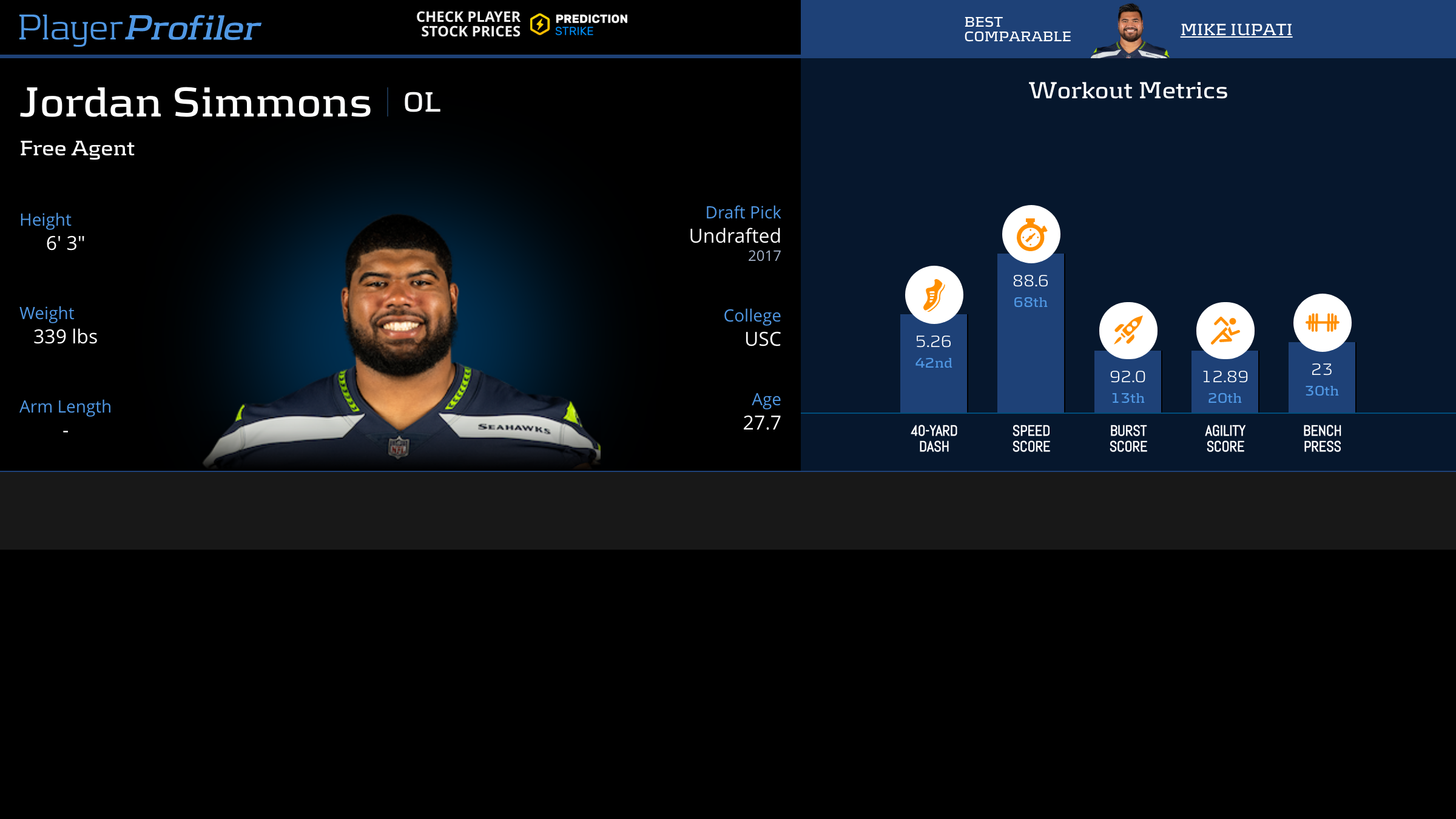 Download all Jordan Simmons advanced stats and metrics with Data Analysis.