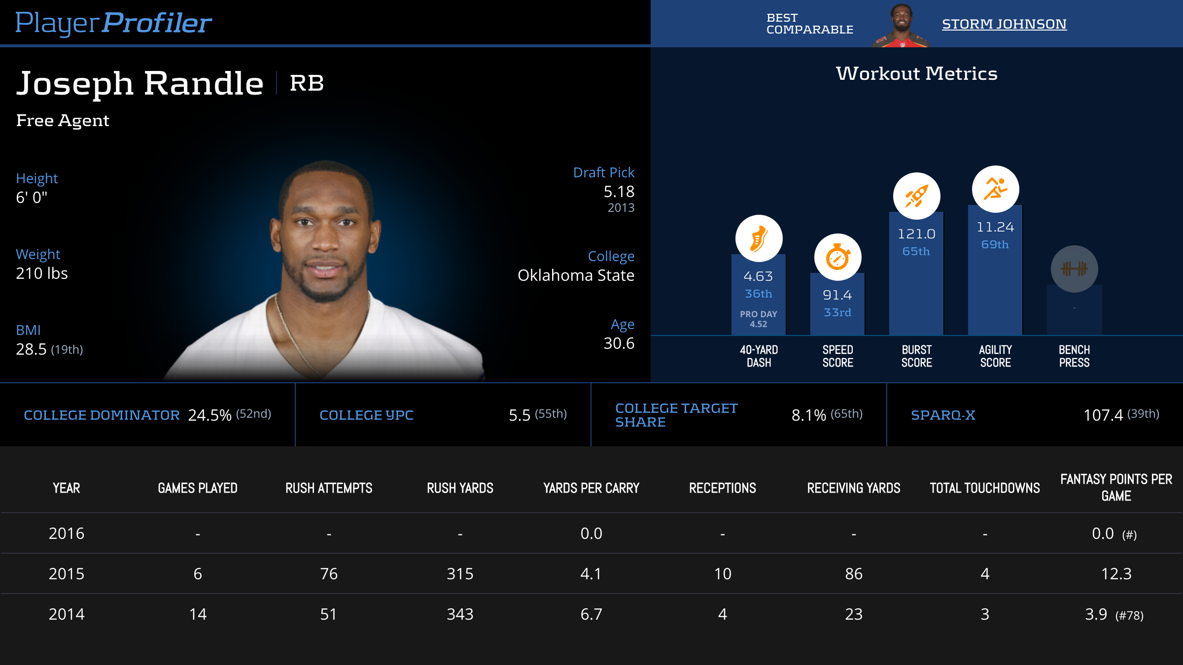 | Year Year | Games Games | Rush Attempts Rush Atts | Rushing Yards Rush Yrds | Total Touchdowns TDs | Receptions Rec | Receiving Yards Rec Yrds | Target Share Tgt Share | Age Age | School School |