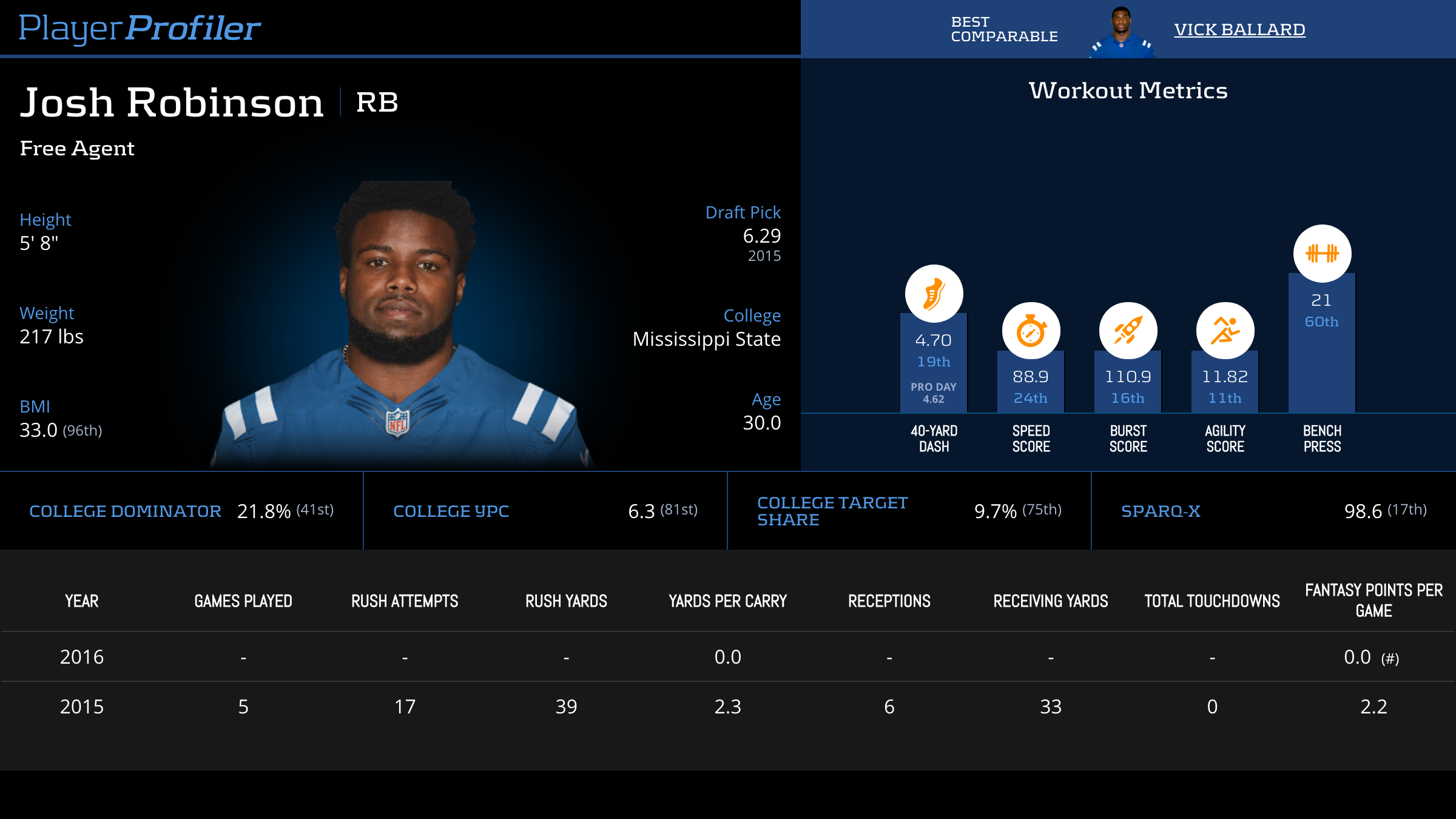 | 1 | BUF | 34.8% | 4 | -- | 0 tgts | -- | 11 | -- | 1.1 |