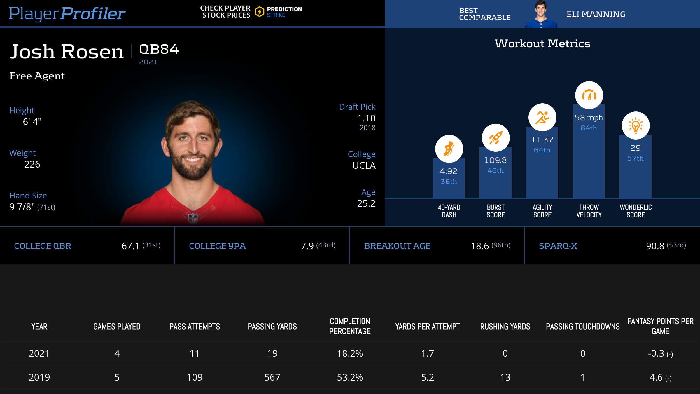 | 11 | NE | 3 | 33.3% | 5 (5 air) | 1.7 | 0 (1 int) | -- | -- | -0.8 (#37) |