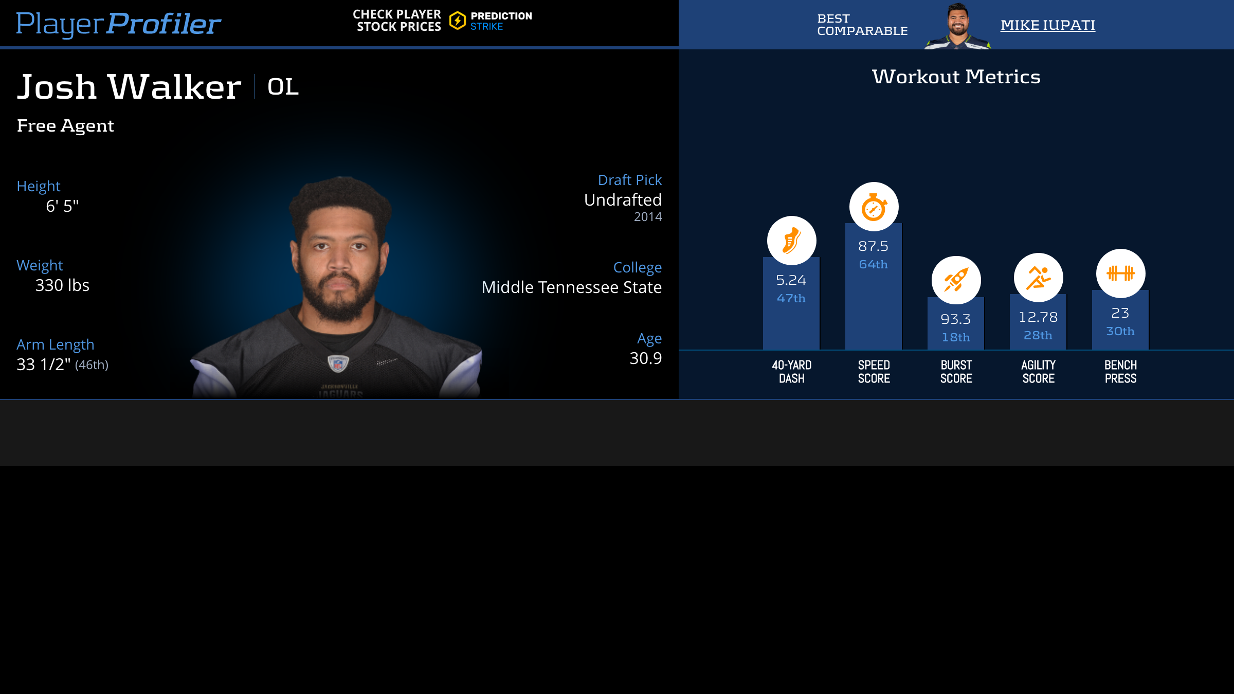 Download all Josh Walker advanced stats and metrics with Data Analysis.
