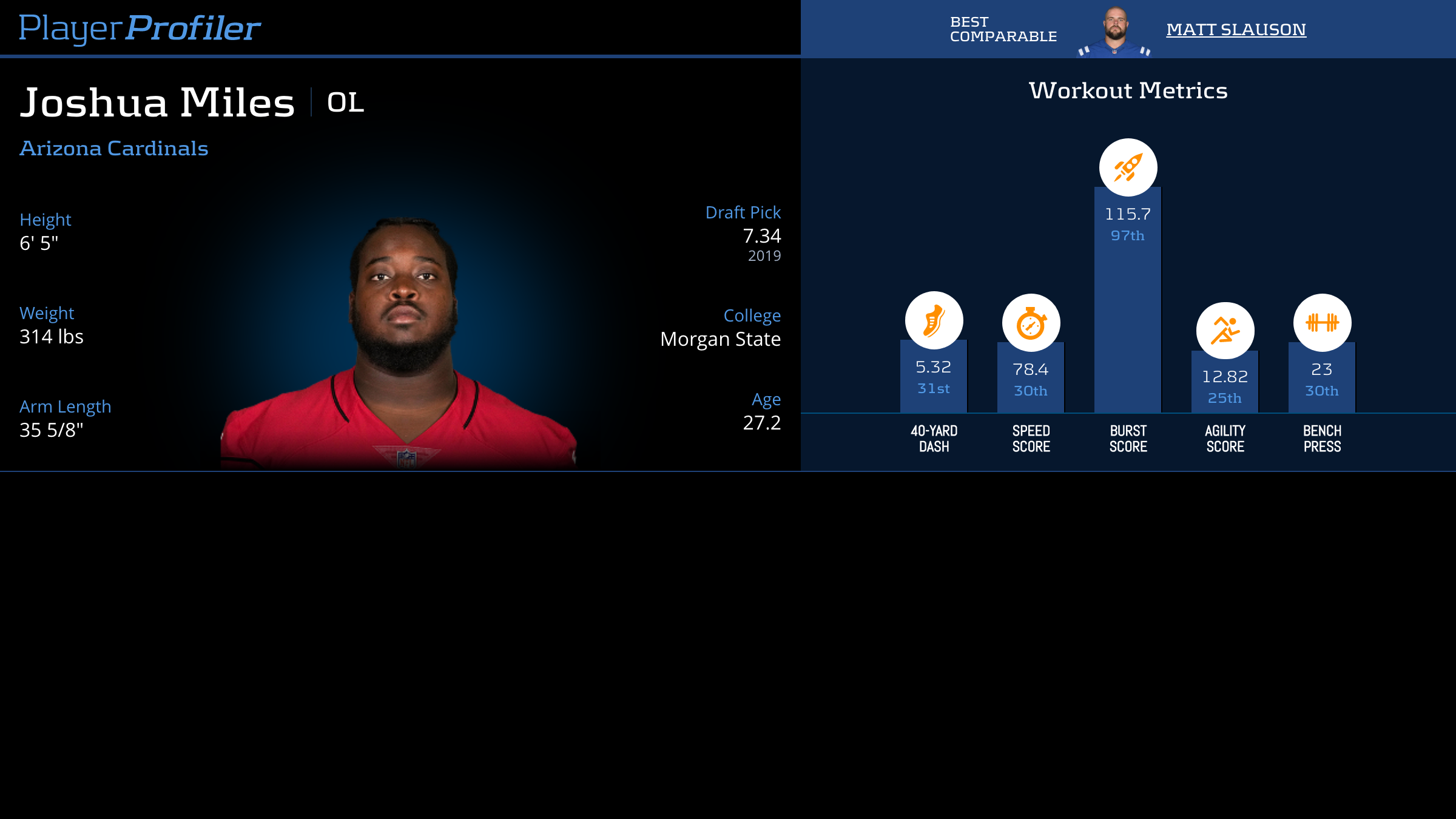 Download all Joshua Miles advanced stats and metrics with Data Analysis.
