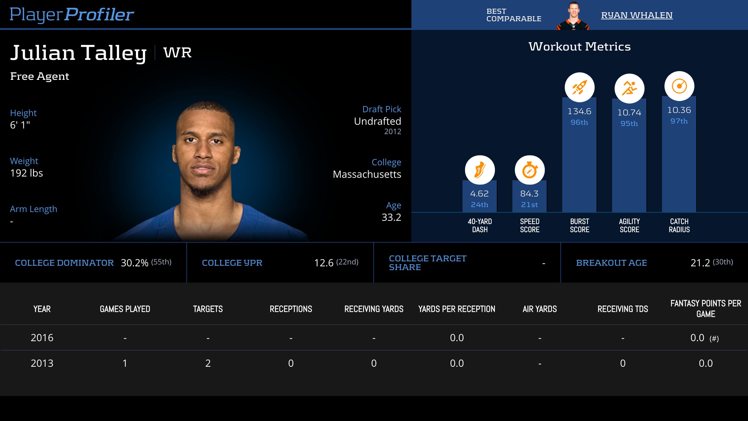 Year Games Tgts Rec Rec Yds YPR Air Yds Rec TD Fantasy Pts/Game