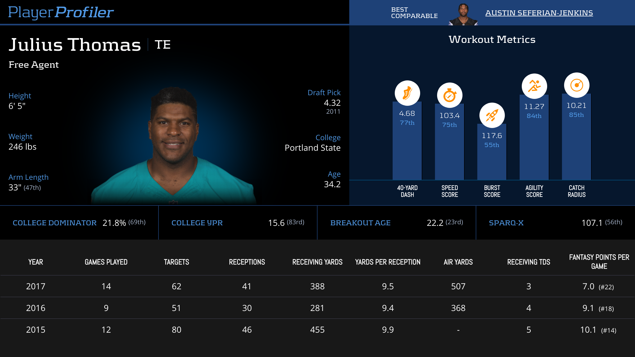 Box score statistics such as targets, yards, touchdowns, and fantasy points per target are updated the next day. Advanced stats and metrics are updated later in the week during the NFL season.