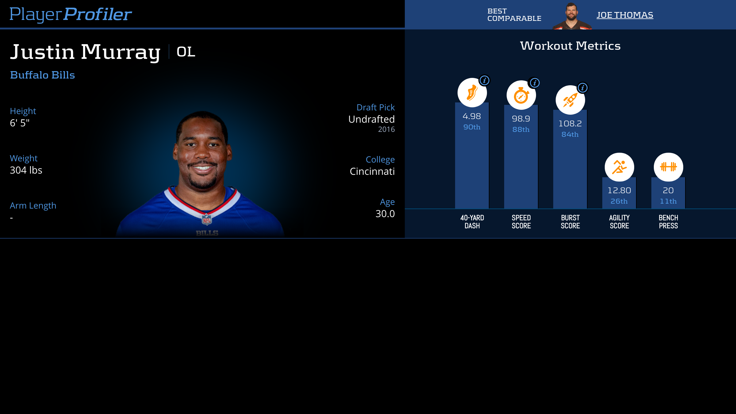 Download all Justin Murray advanced stats and metrics with Data Analysis.