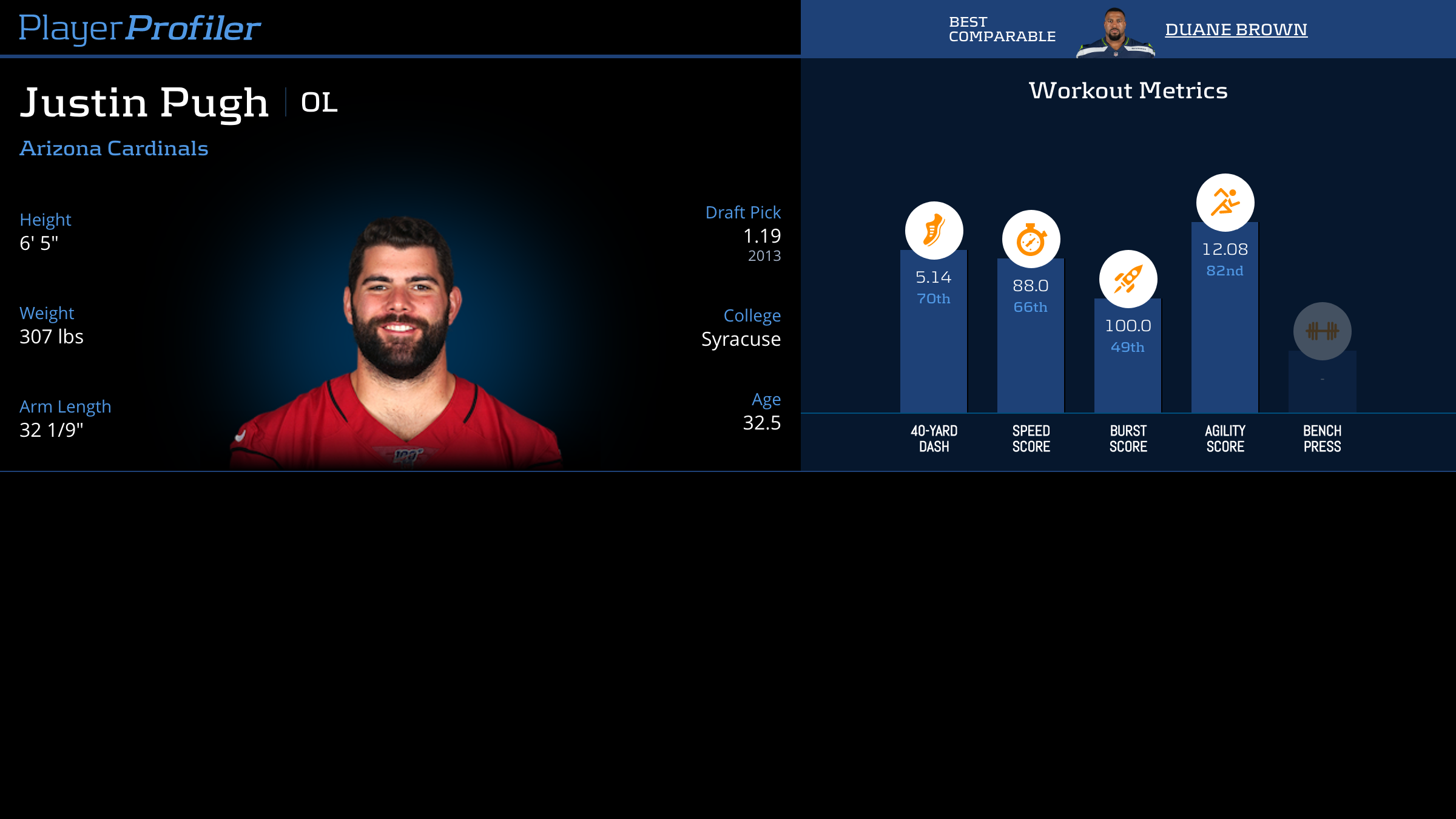 Download all Justin Pugh advanced stats and metrics with Data Analysis.