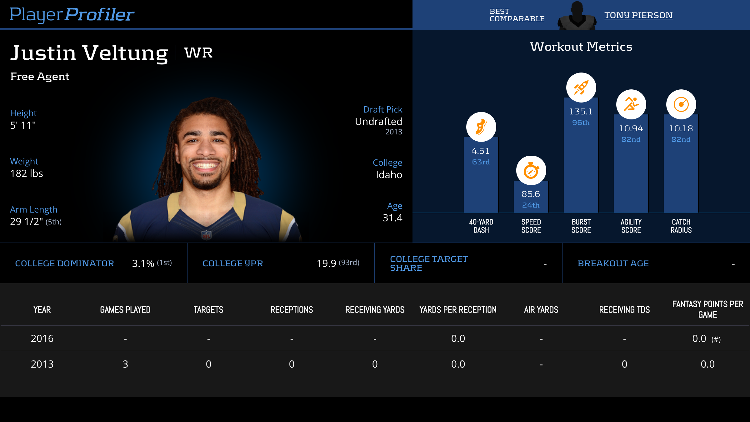 Justin Veltung Advanced Stats & Metrics